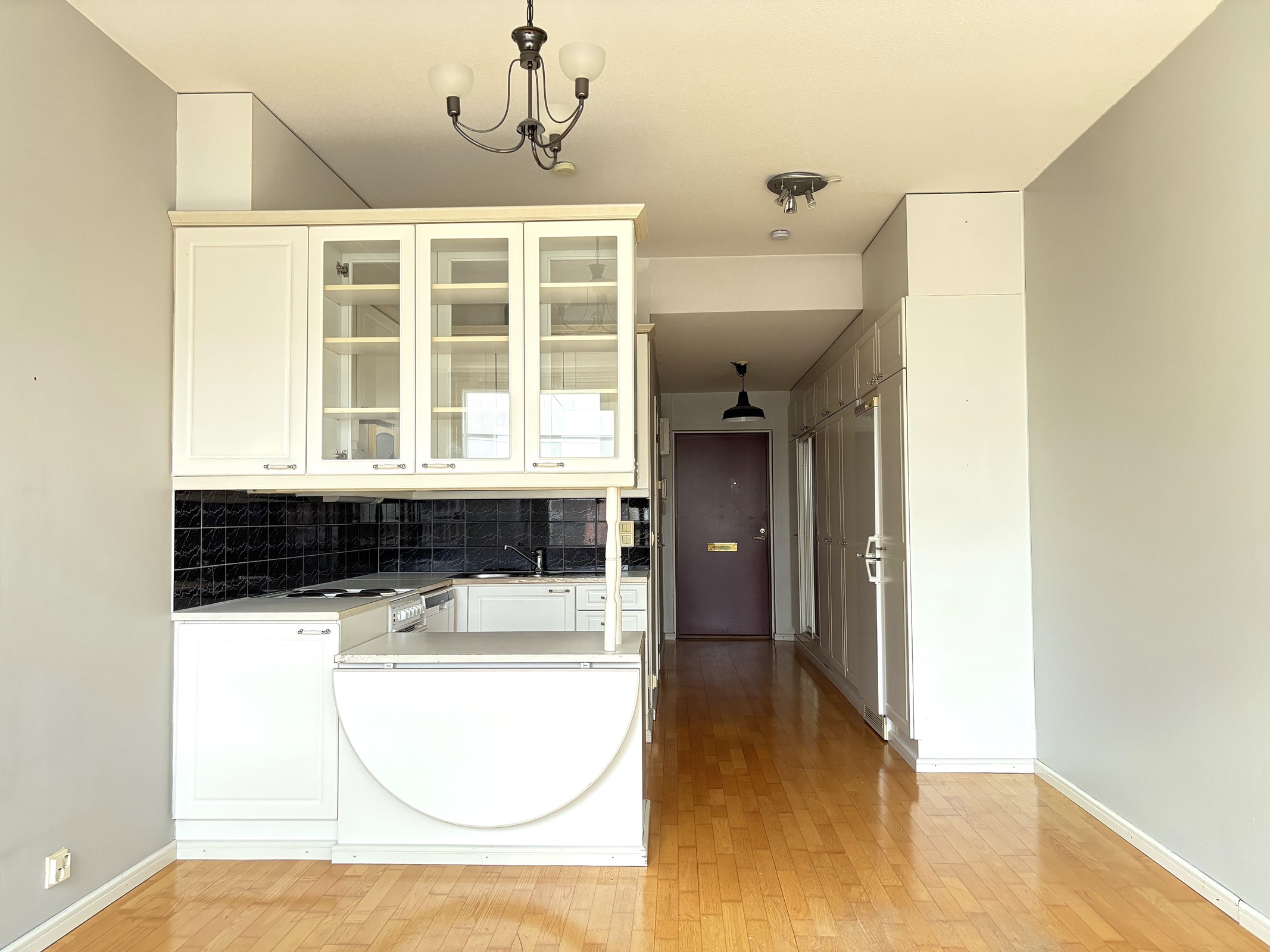 - Jääkaappipakastin, lattialiesi, kaapistot.