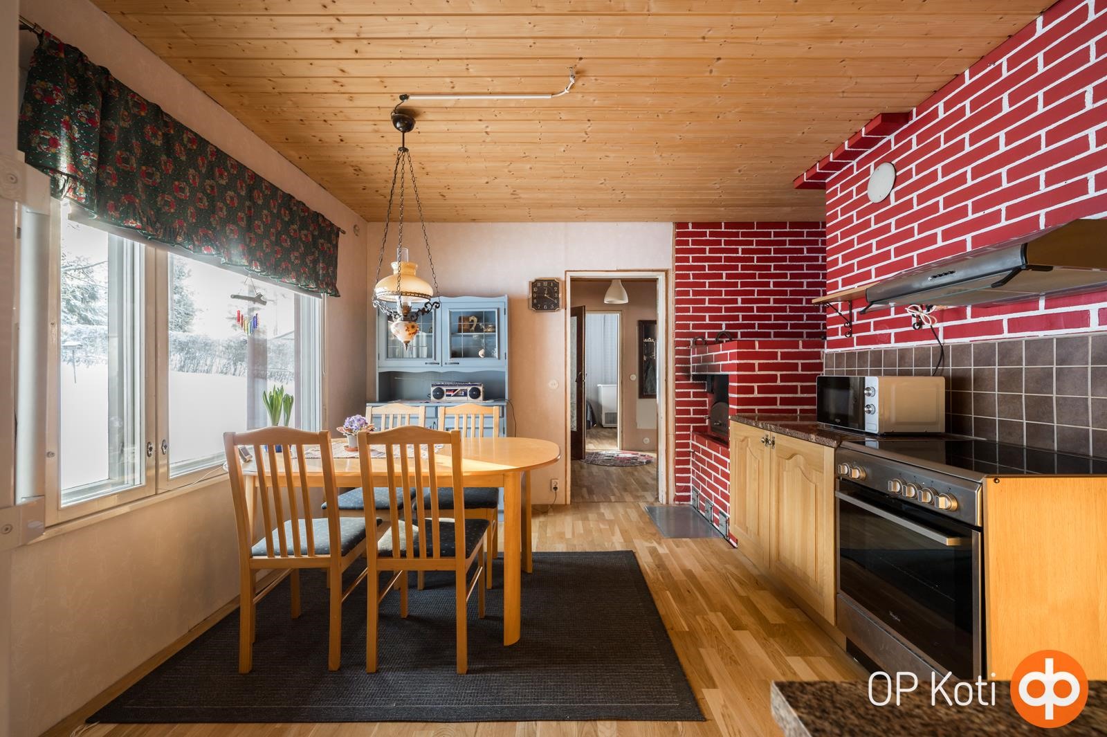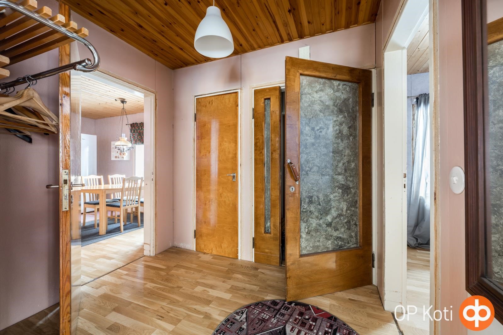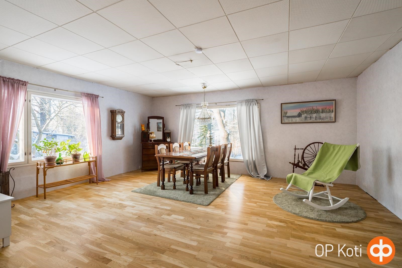 Näppärän kokoinen omakotitalo Hollolan kirkonkylän palveluiden läheisyydessä! Tässä yksikerroksisessa kodissa on kakis makuuhuonetta, olohuone, keittiö, sauna, kylpyhuone, erillinen wc, autotalli ja varasto. Asuinmukavuutta tuo 2019 uusittu vesikiertoinen lattialämmitys ilmavesilämpöpumpulla sekä remontoidut keittiö, kylpyhuone ja sauna. Parkettilattiat on uusittu ja talo on liitetty kunnallistekniikkaan. Sisätilat ovat pääosin hyvässä kunnossa, mutta pintojen viimeistelyllä saat helposti luotua kodista oman näköisesi. Rauhallinen sijainti, suojaisa piha ja monipuoliset tilat tuovat arkeen helppoutta. Omalla tontilla on myös puuvaja ja mahdollisuus hyödyntää käyttämätöntä rakennusoikeutta.