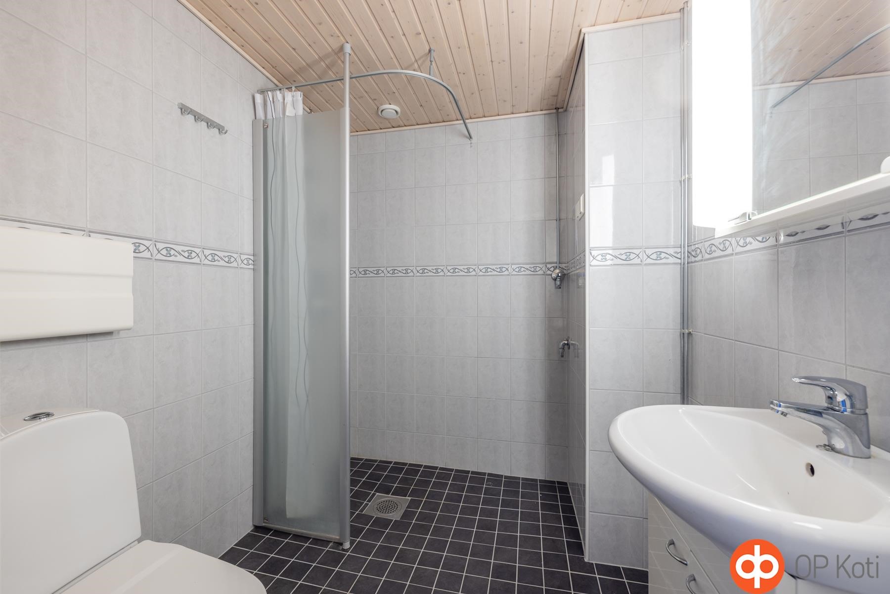 - Kylpyhuone, suihku, suihkuseinä, peilikaappi, allaskaappi, pesukoneliitäntä, lattialämmitys, kiinteät valaisimet. Kylpyhuone uusittu käyttövesiputkiremontin yhteydessä 2011.