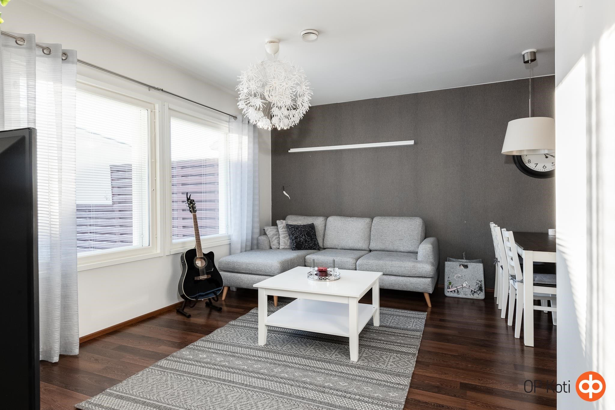 Tähän rivitalokolmioon mahtuu elämää! Valoisa kahden makuuhuoneen rivitalokoti tarjoaa kätevän pohjaratkaisun, jossa kaikki toiminnot sijoittuvat samaan tasoon.