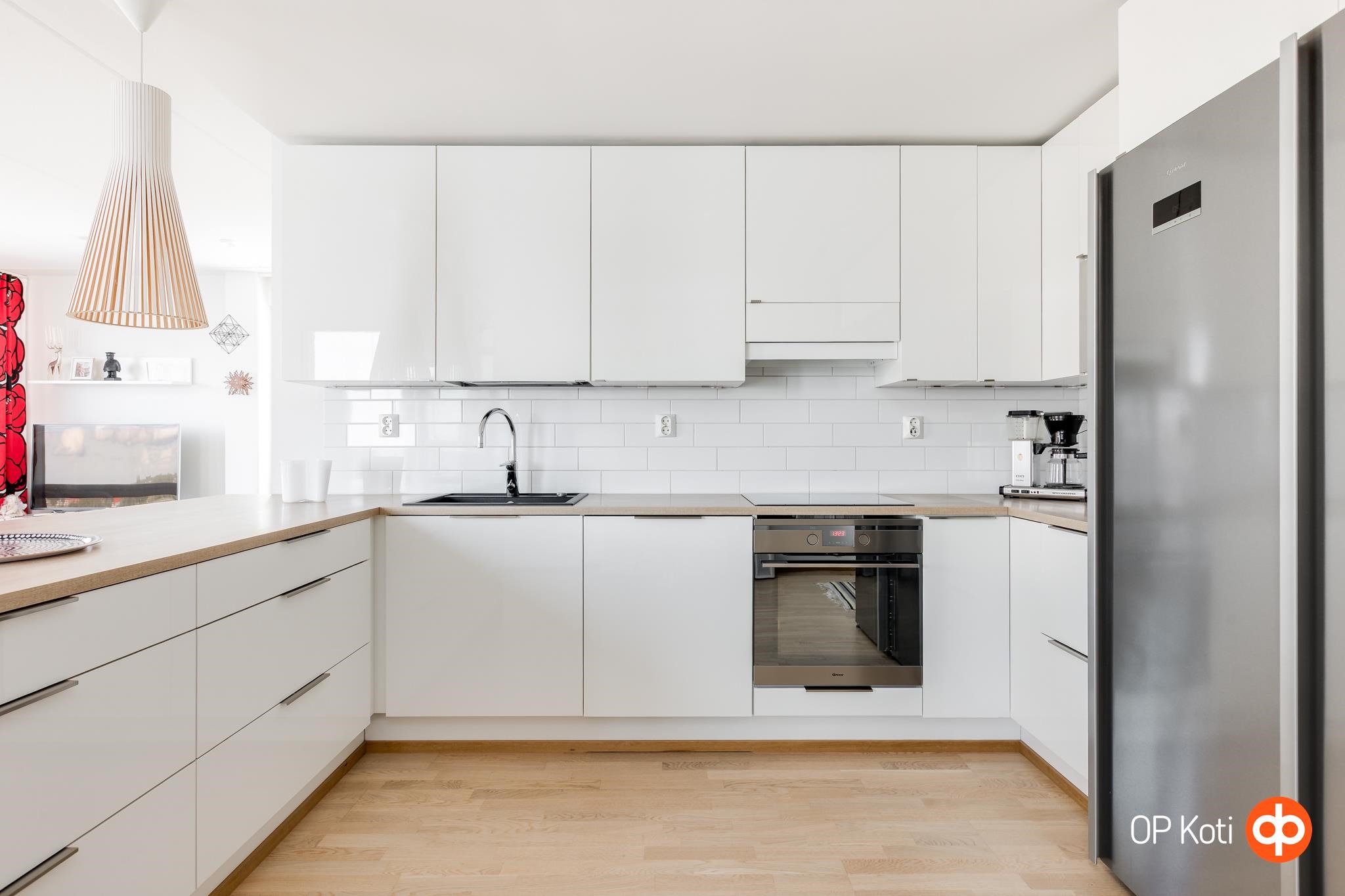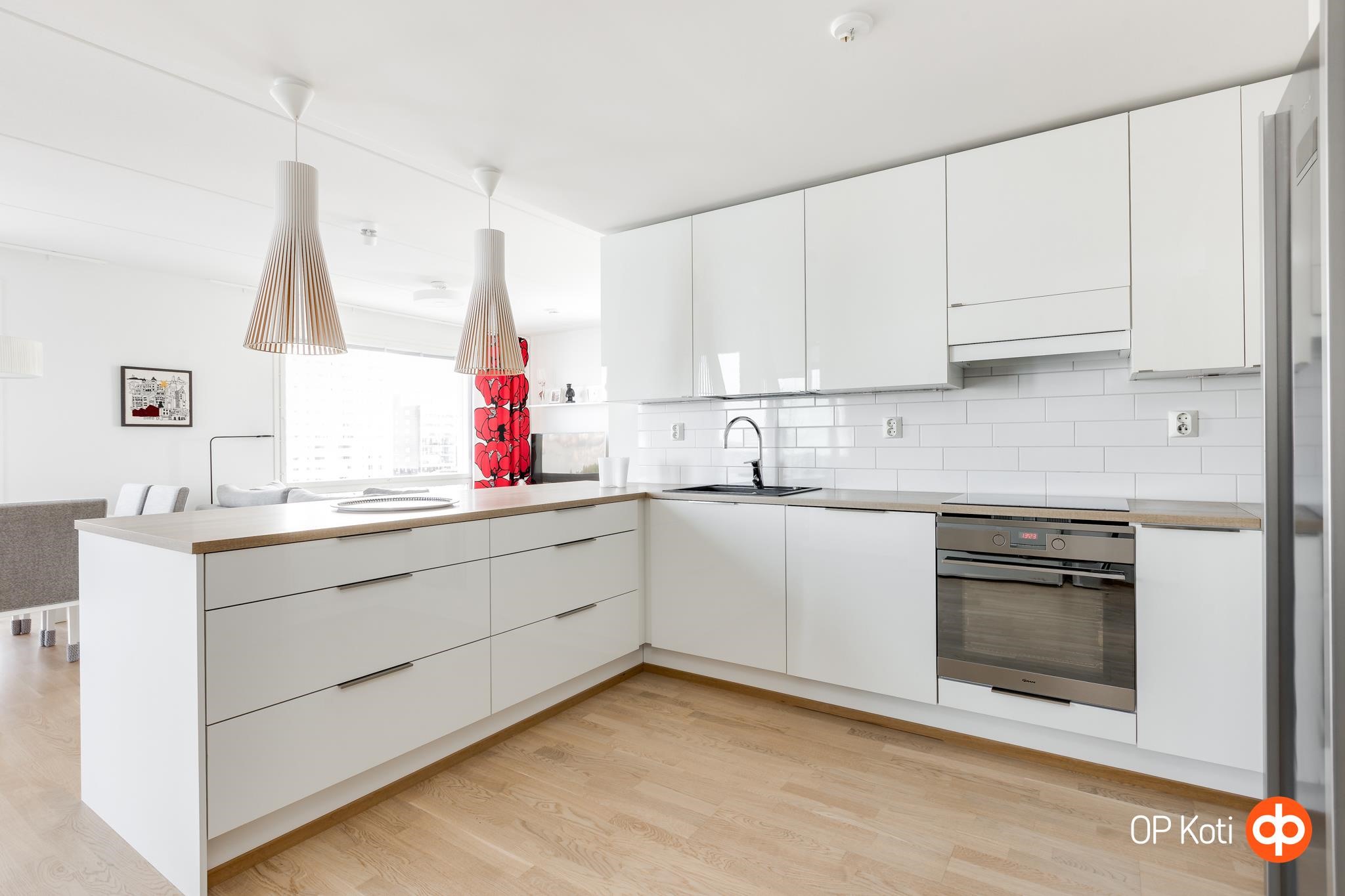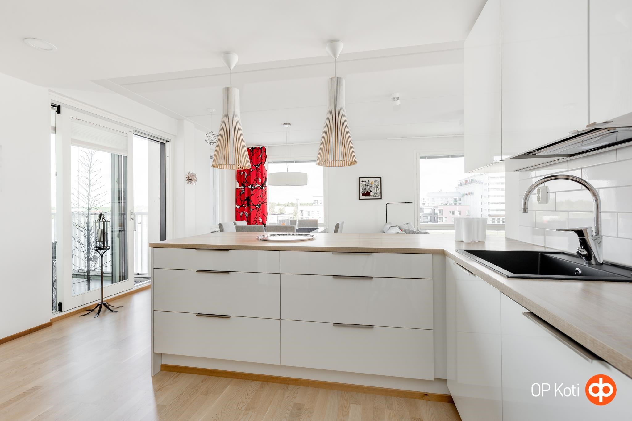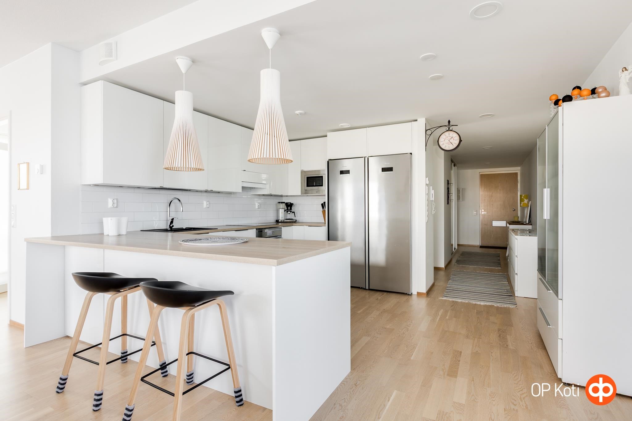 Korkealuokkaiset materiaalit ja ajanmukainen varustelu tekevät asumisesta viihtyisää. Keittiö on suunniteltu sekä arkea että juhlaa silmällä pitäen. Modernit kodinkoneet, harkitut säilytysratkaisut ja tyylikkäät pinnat tekevät ruoanlaitosta nautinnon. Asunnossa yhdistyvät toimivuus, viihtyisyys ja ajaton design.
