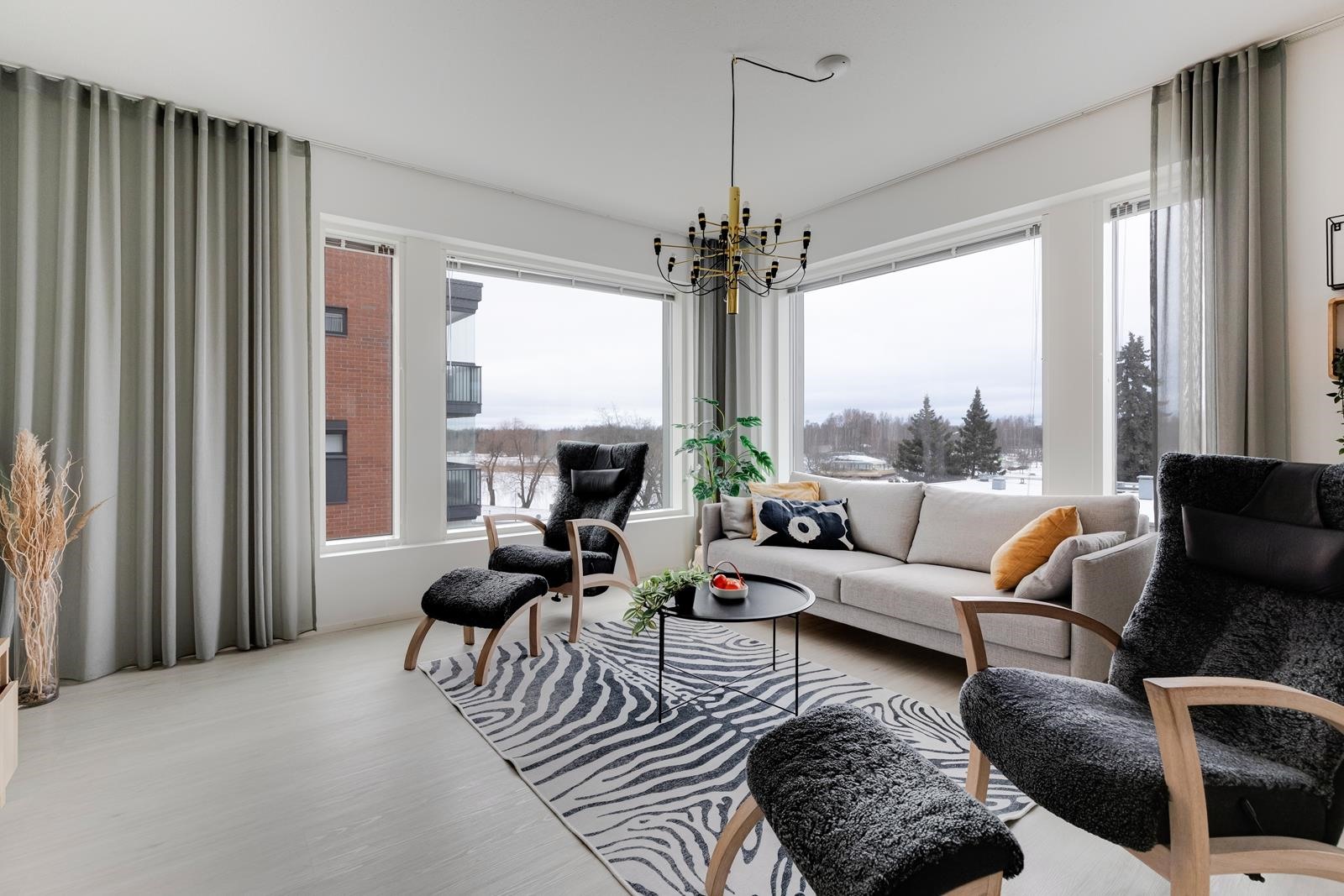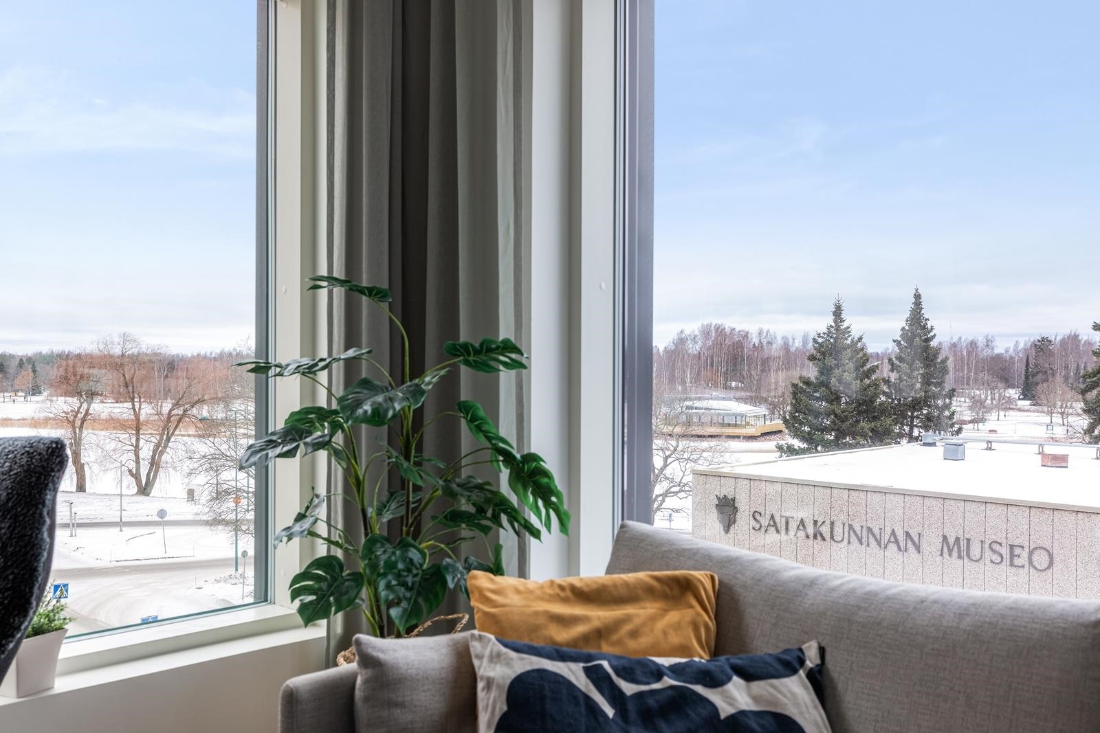 Arvostetulla paikalla Karhukorttelissa, Satakunnan museota vastapäätä myynnissä neljännen kerroksen iso kulmahuoneisto, jossa valo, näkymät ja laadukas asuminen kohtaavat tyylikkäällä tavalla.