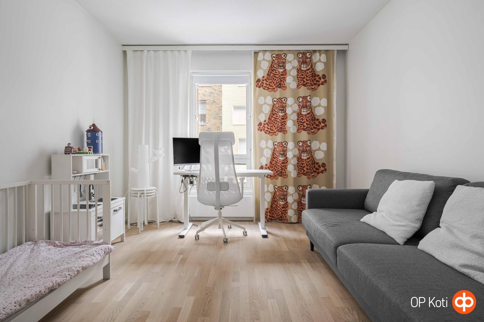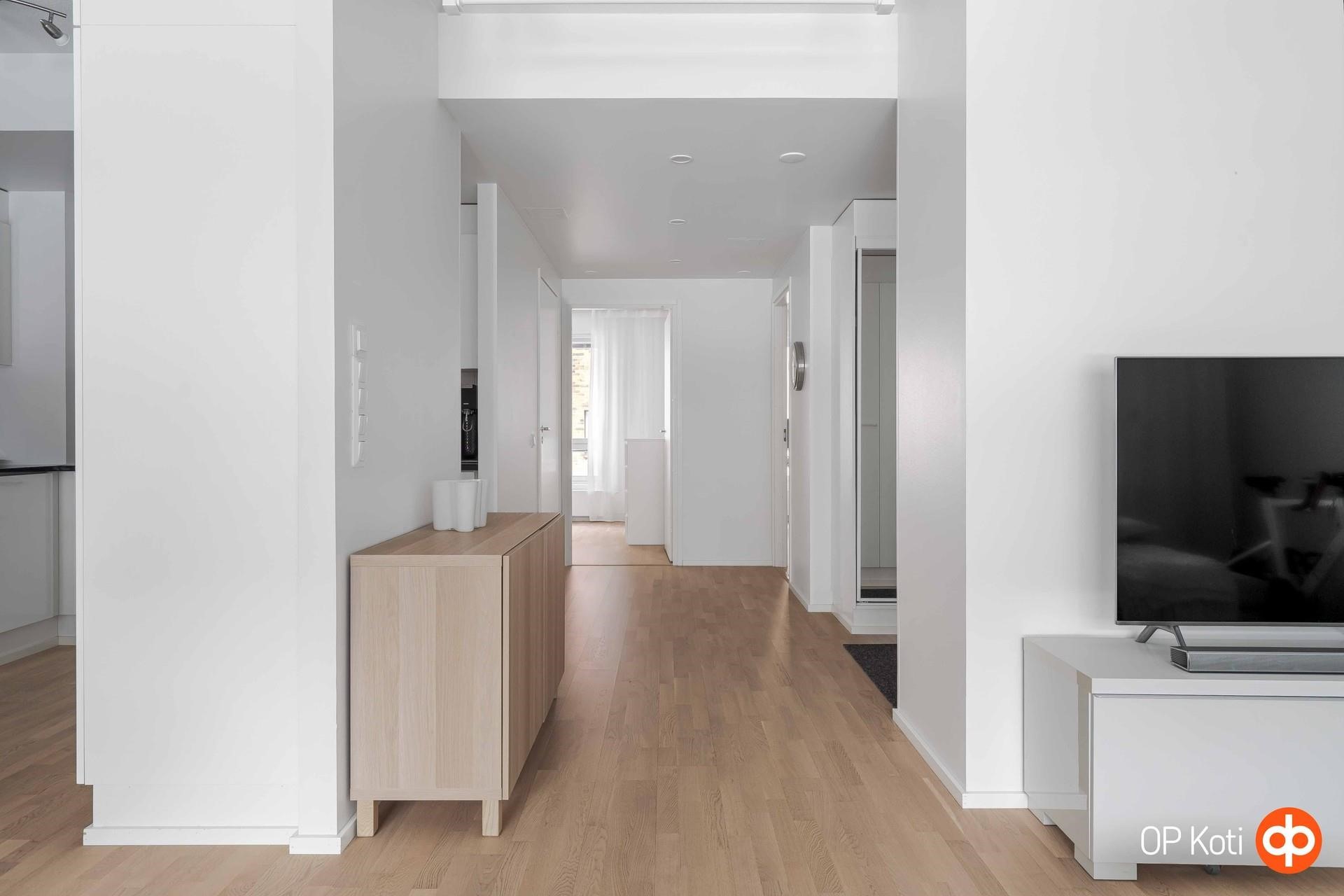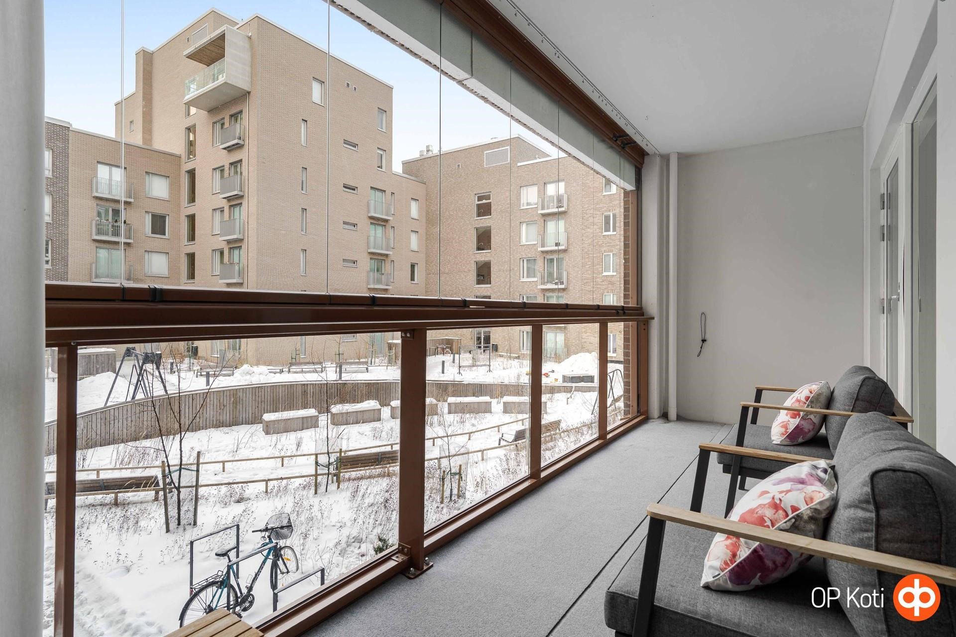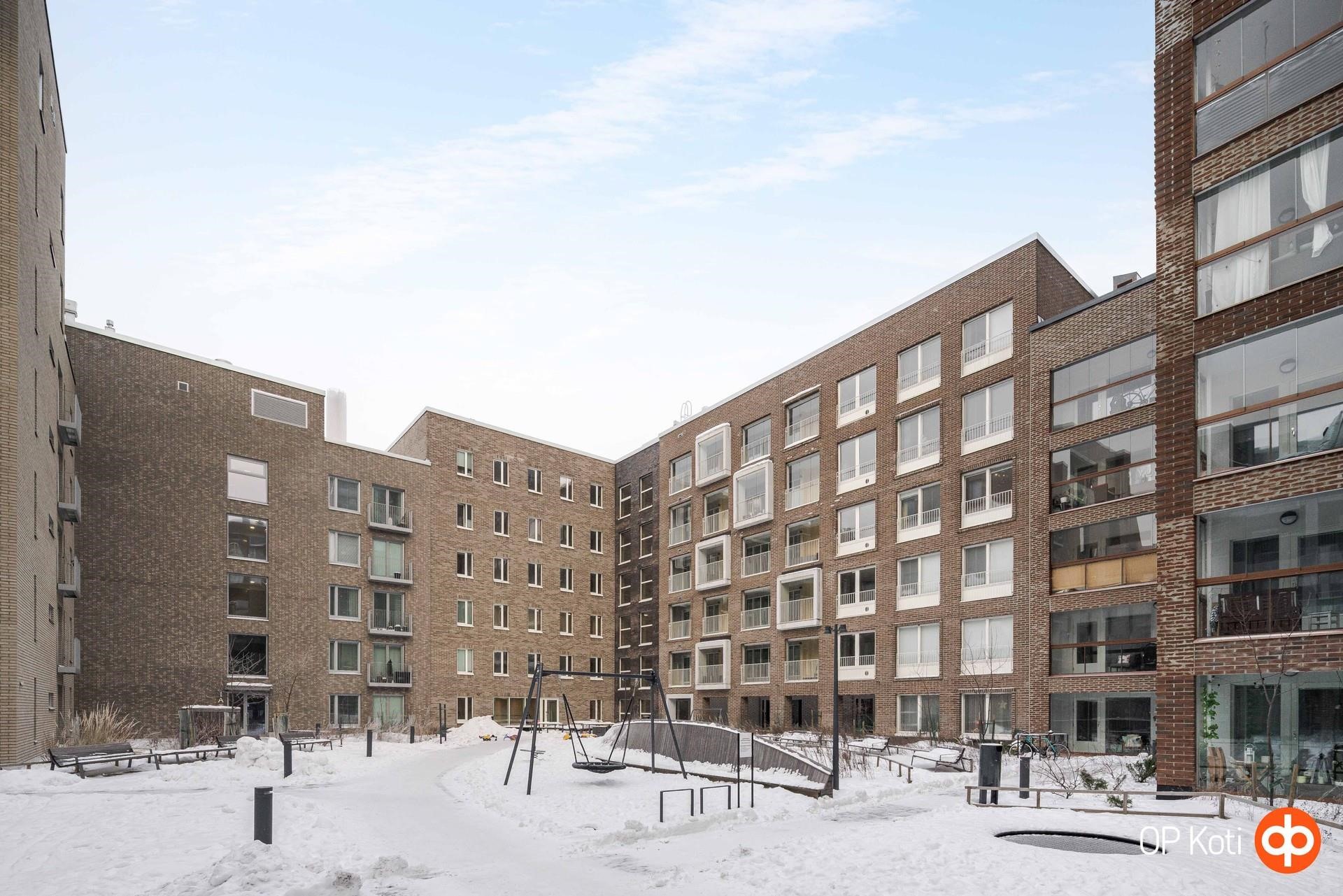 Tämän Hitas-kodin tunnelma on poikkeuksellisen levollinen. Ikkunat avautuvat kahteen suuntaan, hiljaiselle kujalle ja rauhalliselle sisäpihalle. Asuinhuoneiden harmoniset sävyt lisäävät kodin kutsuvaa tunnelmaa. Keittiö ja olohuone muodostavat yhtenäisen, ilmavan kokonaisuuden, jossa yhteiset hetket syntyvät vaivatta. Suuri lasitettu parveke avautuu sisäpihalle ja tarjoaa miellyttävän lisätilan, paikan rentoutumiseen, kahvitteluun tai lasten leikkien seuraamiseen.