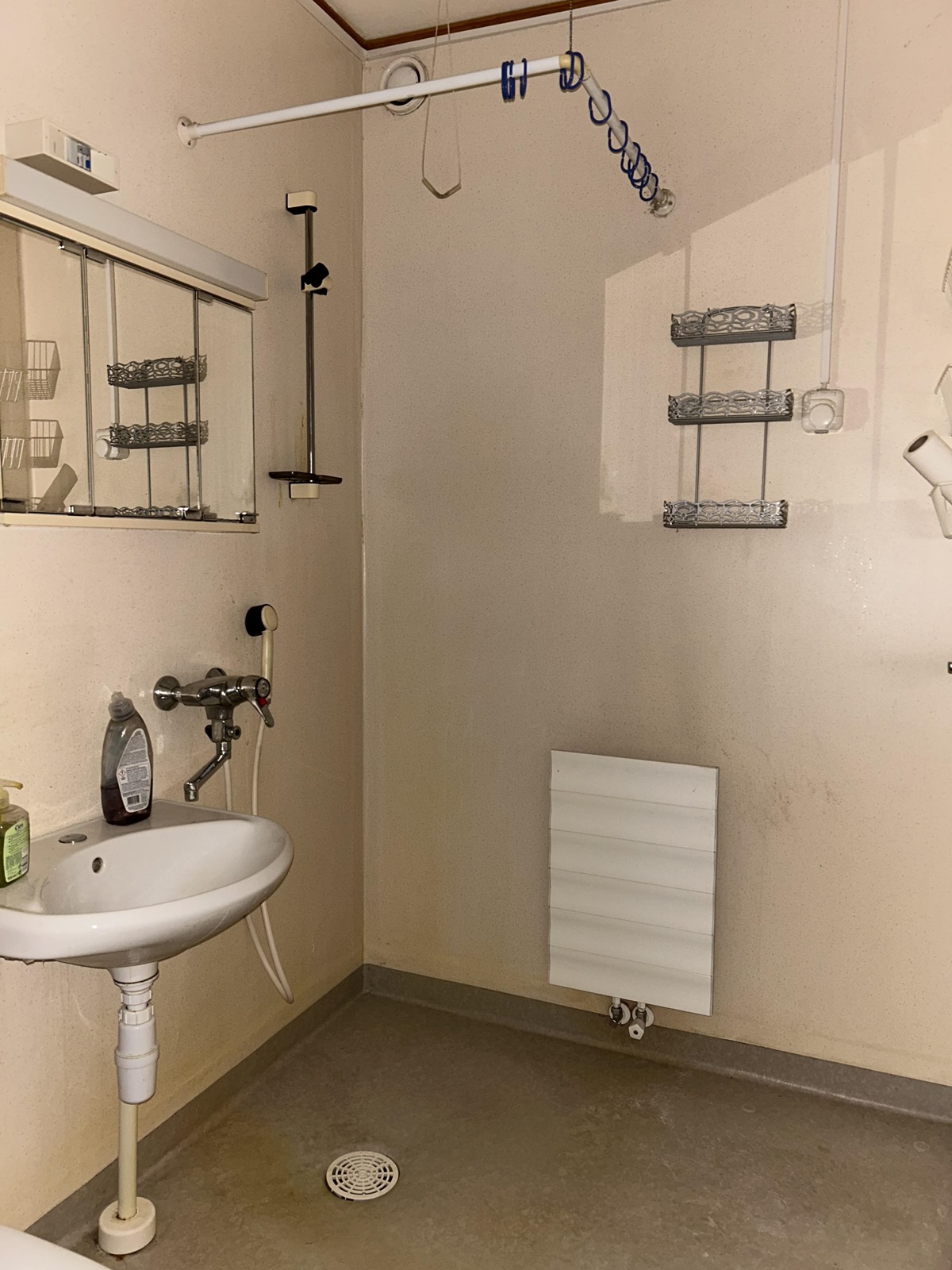 - Kylpyhuone, suihku, peilikaappi, pesukoneliitäntä, kiinteät valaisimet.
