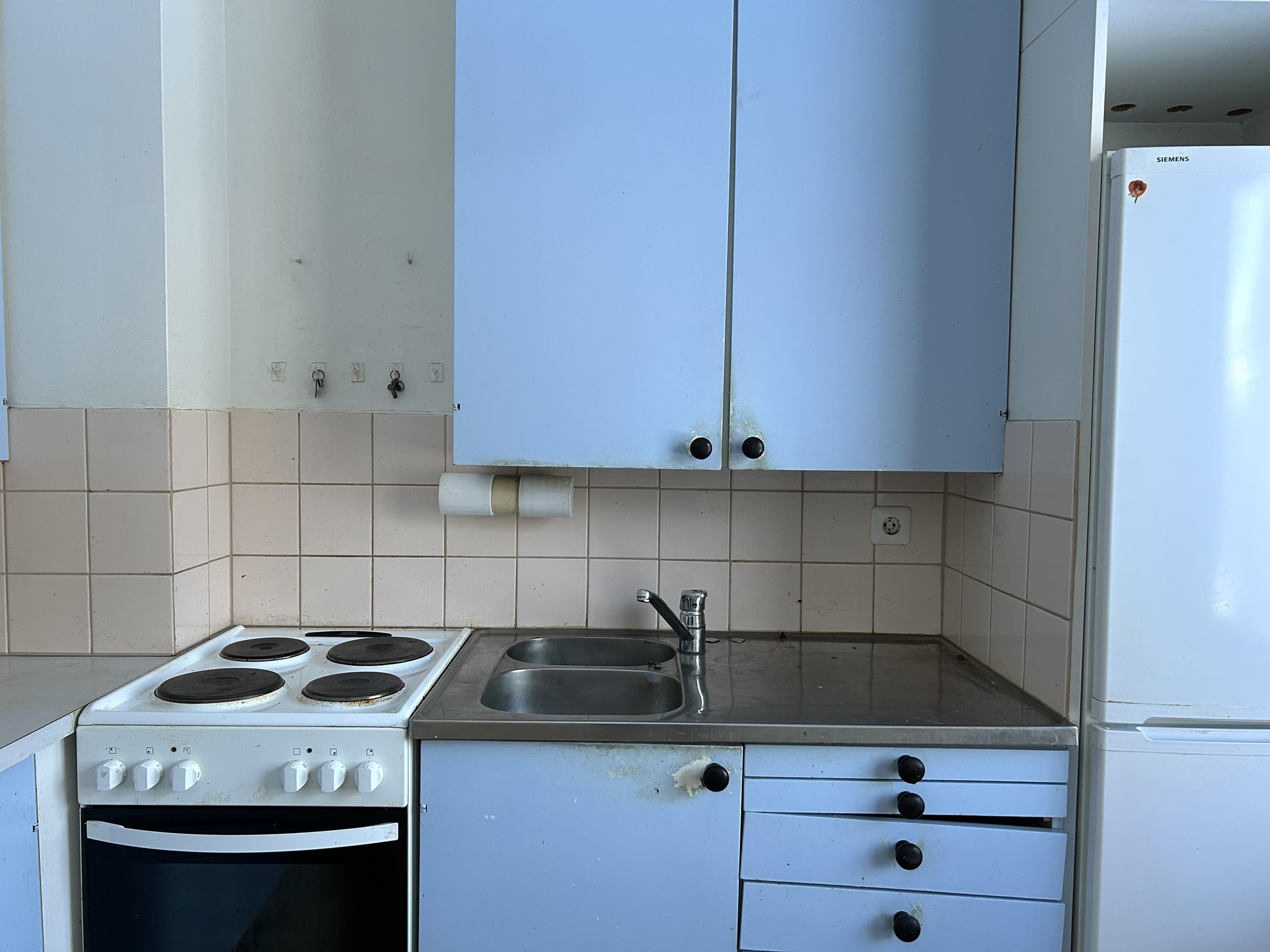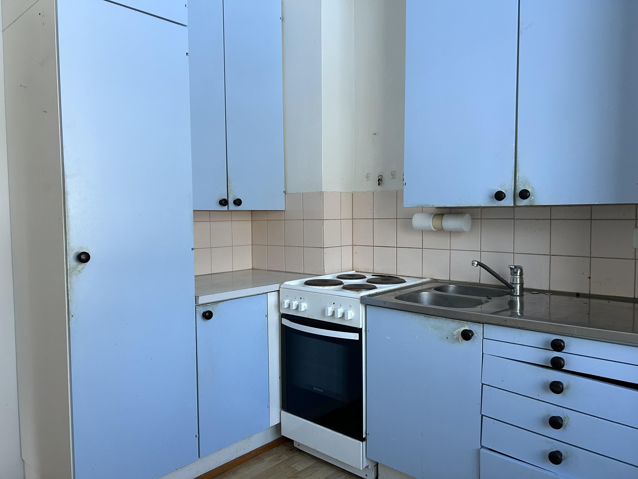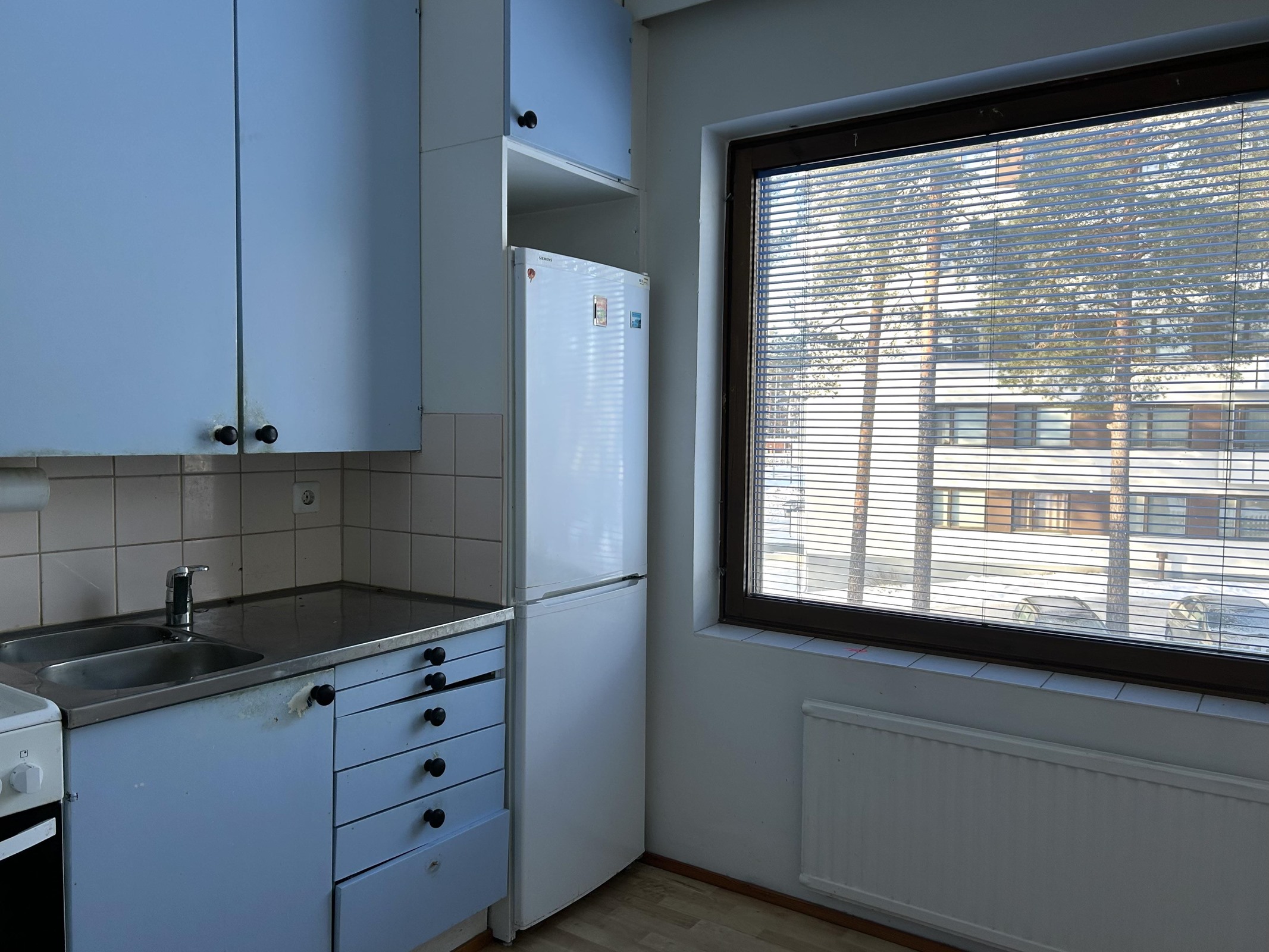 - Jääkaappipakastin, lattialiesi, sähköliesi, liesituuletin, kaapistot.