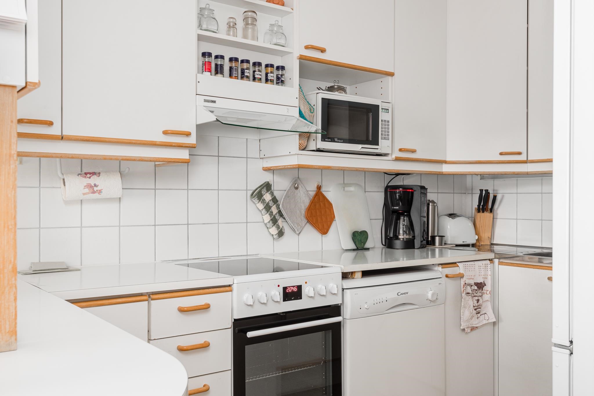 - Jääkaappipakastin, keraaminen liesi, liesituuletin Talotuuletin, kaapistot, kiinteät valaisimet. Keittiössä astianpesukone -valmius, nykyinen astinapesukone on vuokralaisen oma.