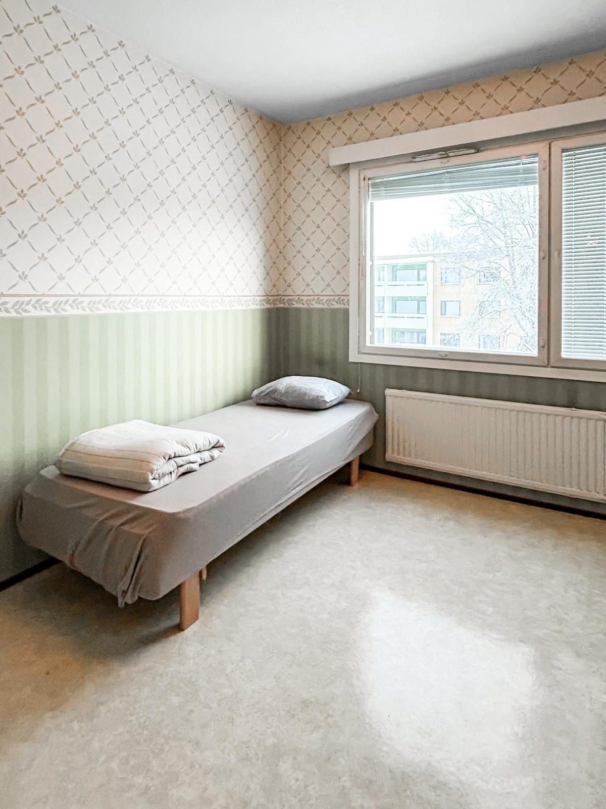 Keittiö: muovilattia, maalatut seinät. Olohuone: muovilattia, tapatoidut seinät. Makuuhuone 1: muovilattia, tapetoidut seinät. Makuuhuone 2: muovilattia, tapetoidut seinät. Kylpyhuone: muovilattia, muoviseinät. Wc: muovilattia, muoviseinät.