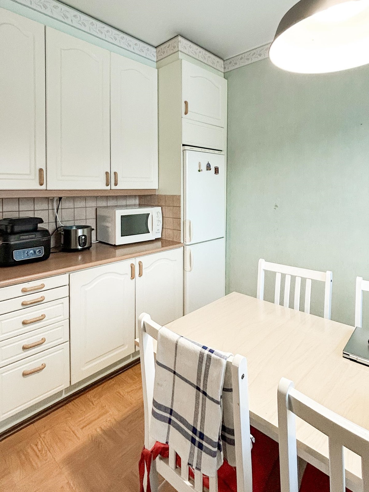 - Jääkaappipakastin, sähköliesi, kiinteät valaisimet.