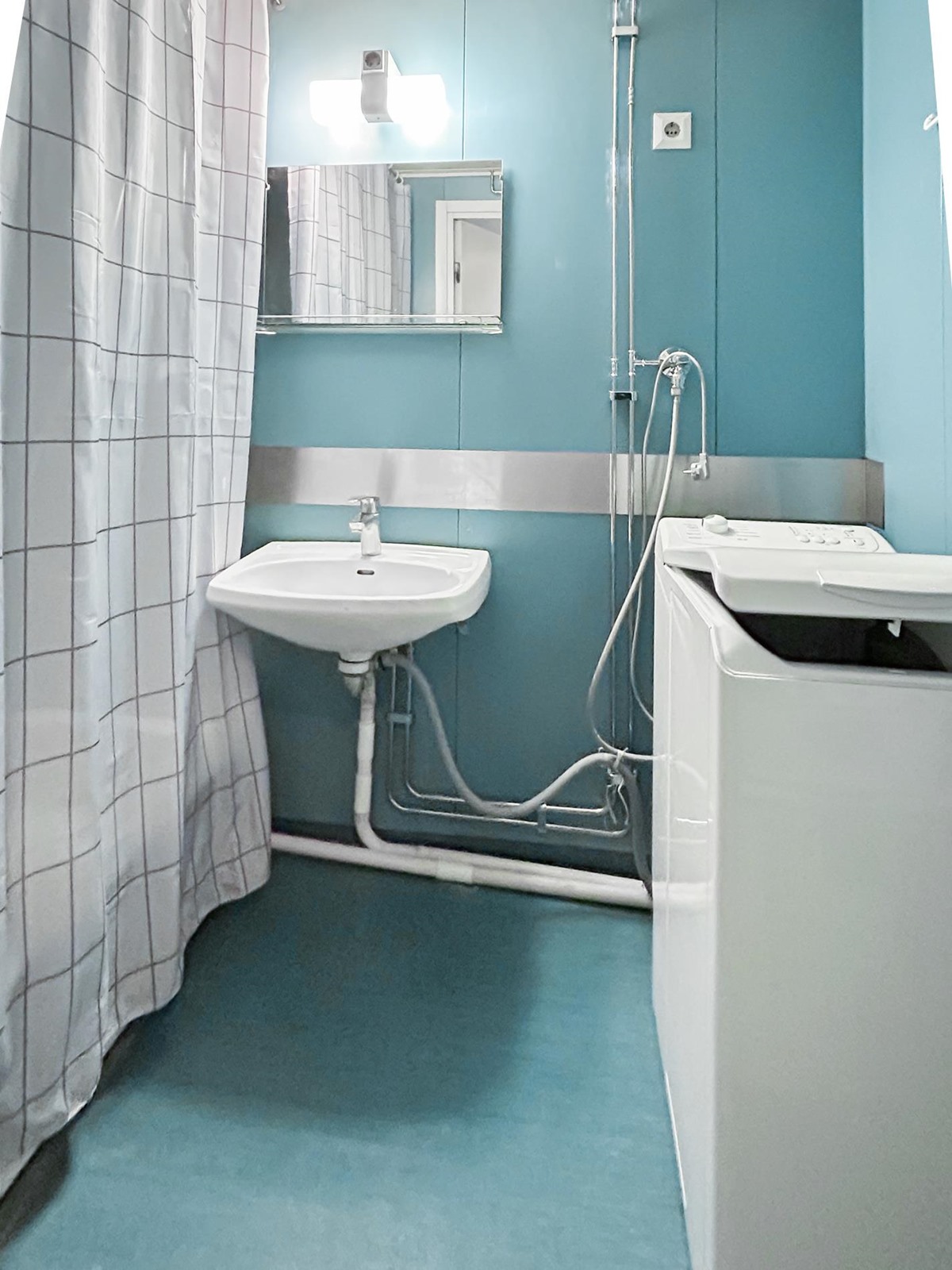 - Kylpyhuone, erillinen wc, suihku, peilikaappi, pesukoneliitäntä, kiinteät valaisimet.