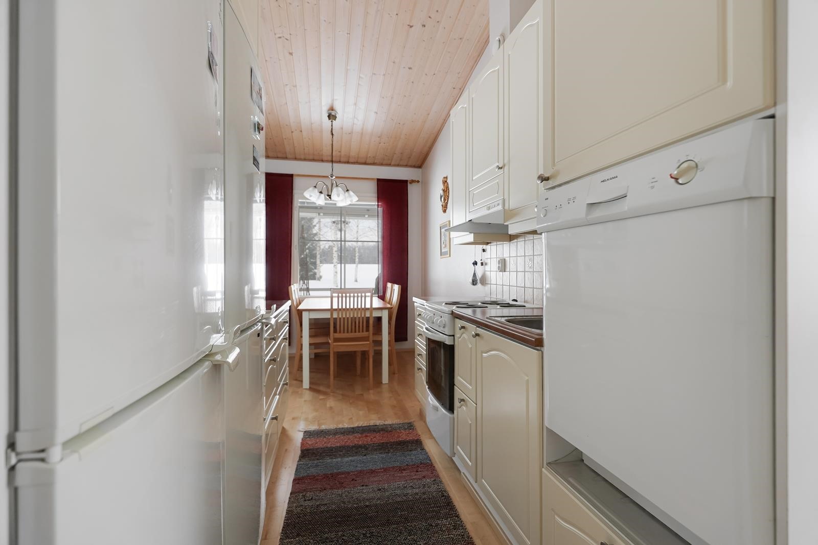 - Jääviileäkaappi alkuperäinen, jääkaappipakastin alkuperäinen, sähköliesi, liesituuletin, astianpesukone alkuperäinen, kaapistot, kiinteät valaisimet.