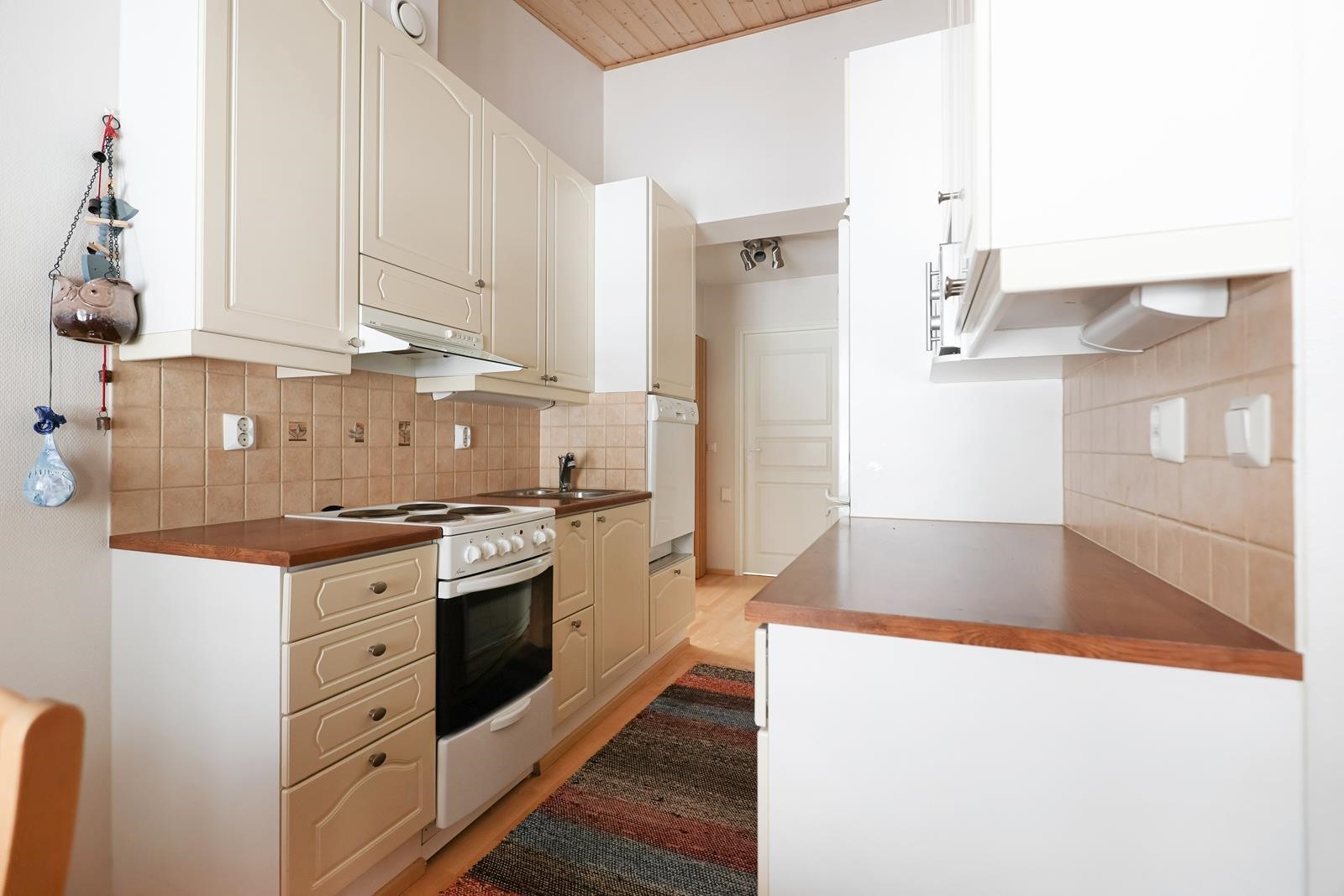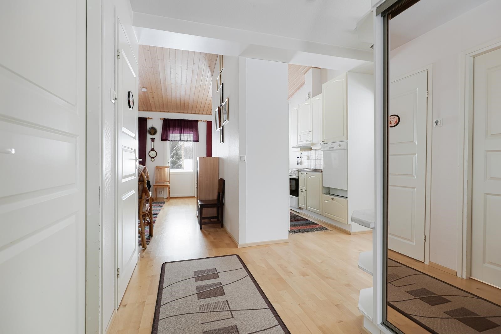 Asunnossa hyvä pohjaratkaisu, korotettu sisäkatto ja vaalea yleisilme luovat avaran ja modernin tunnelman. Olohuoneesta on käynti tilavalle, v. 2008 lasitetulle terassille, joka tarjoaa mukavan lisätilan pitkälle syksyyn.