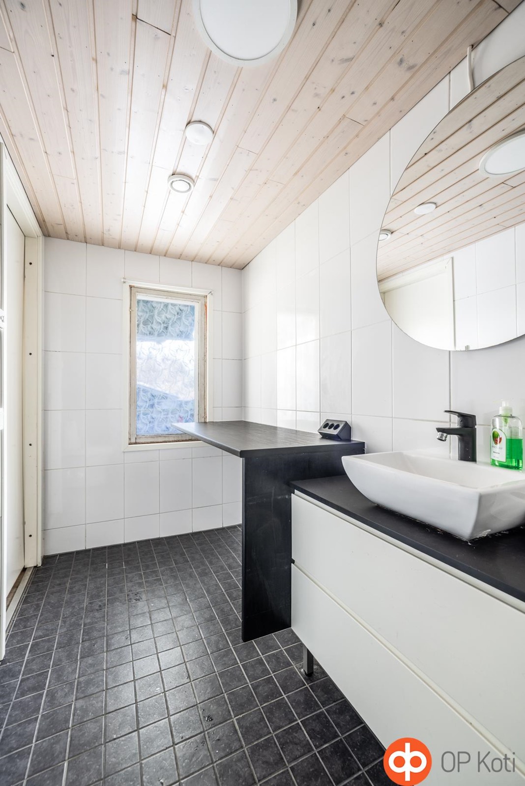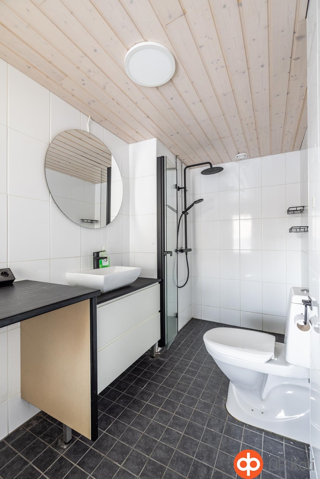 - Sauna Pihasauna, puukiuas, kylpyhuone, suihku, peilit, allaskaappi, pesukoneliitäntä, lattialämmitys, kiinteät valaisimet.