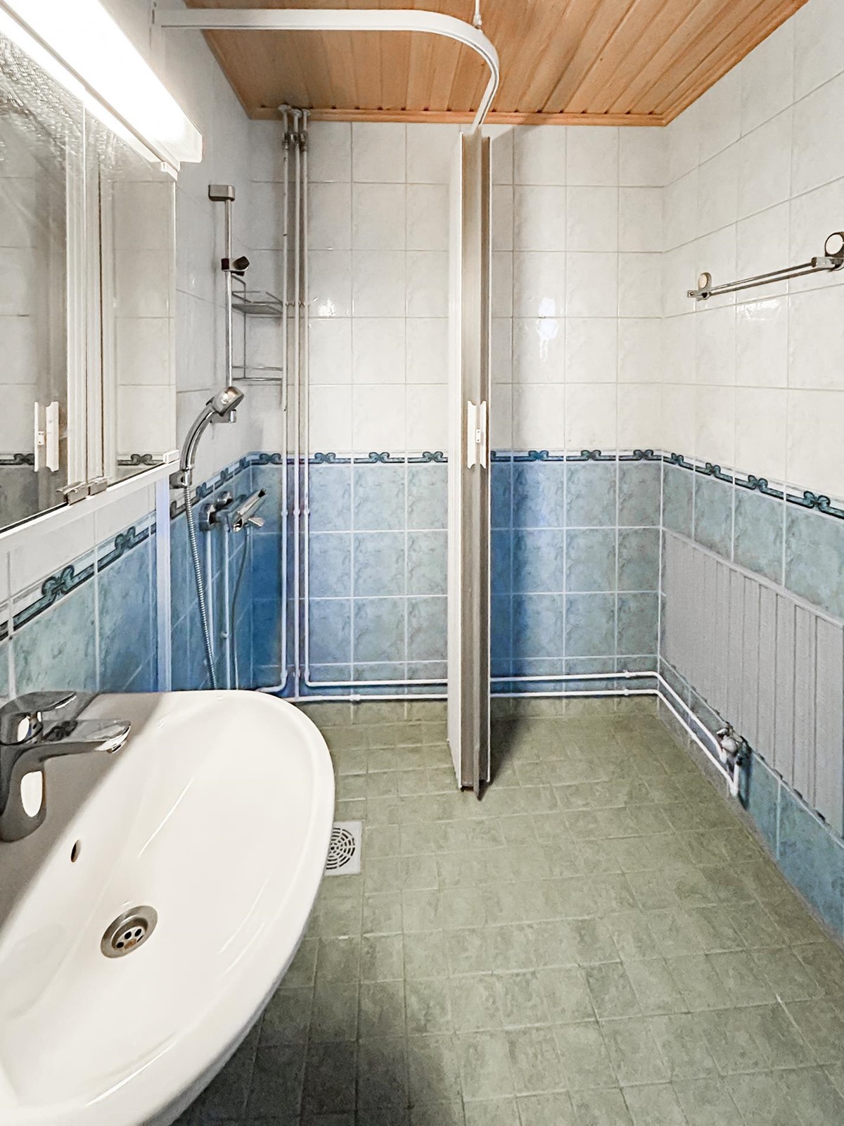 - Sauna, sähkökiuas, kylpyhuone, suihku, suihkuseinä, peilikaappi, pesukoneliitäntä, kiinteät valaisimet.