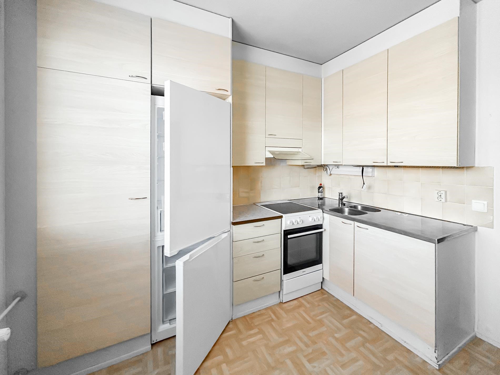 - Jääkaappipakastin 04/2024, keraaminen liesi 01/2024, liesituuletin, kaapistot, kiinteät valaisimet.