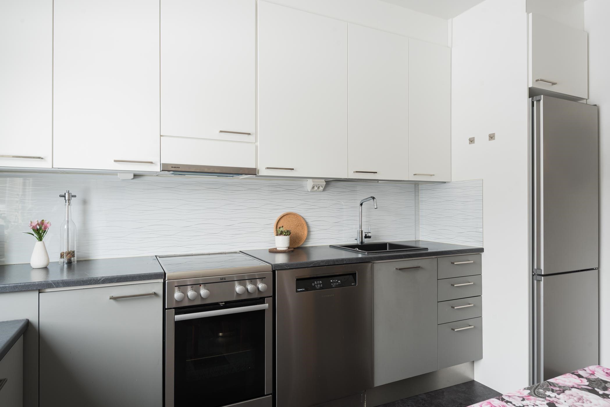- Jääkaappipakastin, induktioliesi, liesituuletin, astianpesukone (2023), kaapistot, kiinteät valaisimet. Charmia-keittiö. Keittiö on remontoitu edellisen omistajan aikana.
