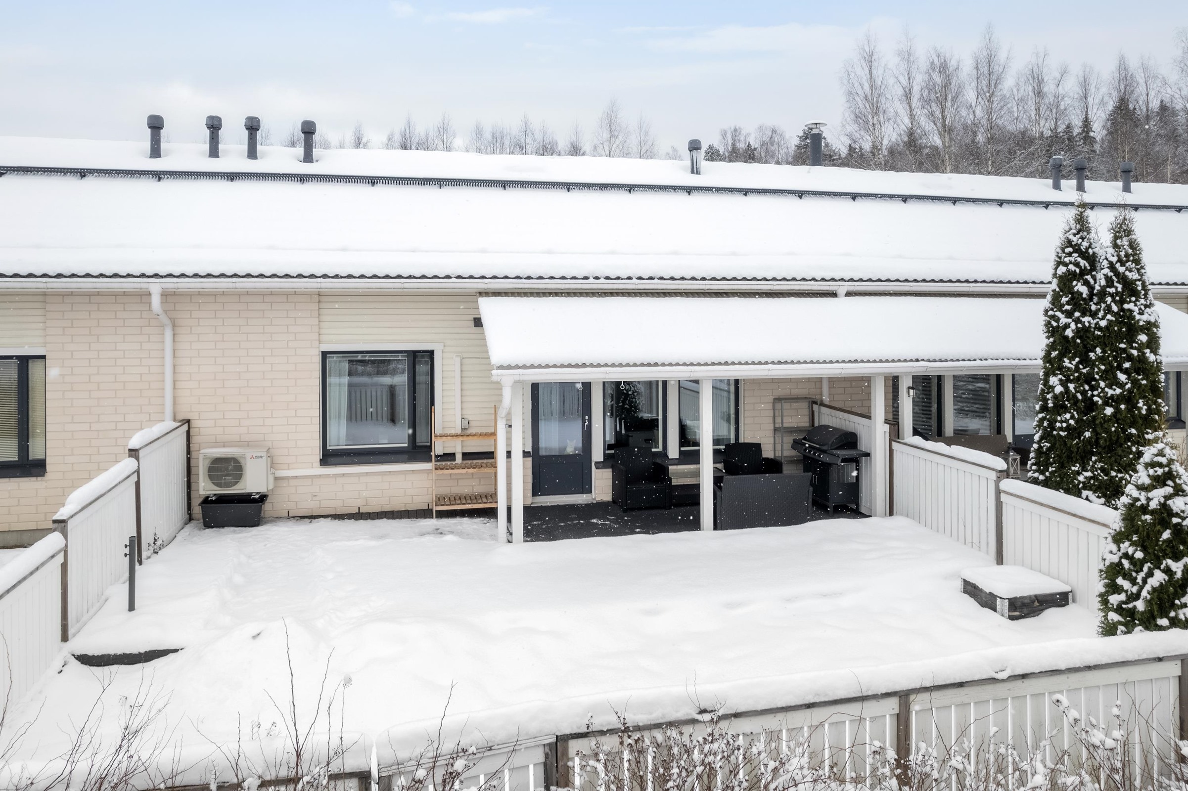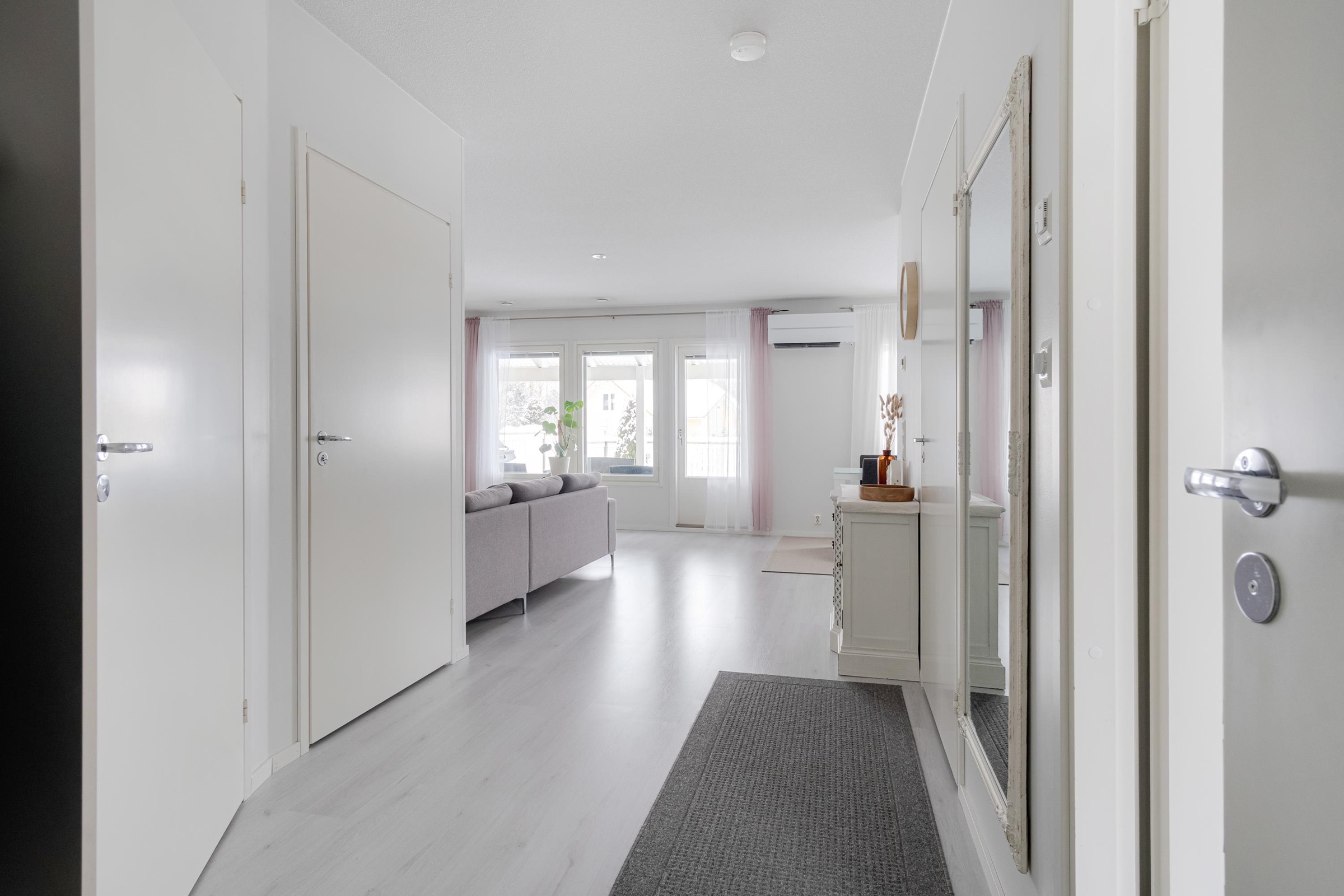Asunnon ehdoton vahvuus on avoin keittiö-olohuonetila, joka yhdessä runsaan luonnonvalon ja toimivan pohjaratkaisun kanssa tekee kodista avaran ja viihtyisän. Miellyttävänä lisänä on suojaisa takapiha sekä valokatteella varustettu terassi, joka tuo käytännöllistä lisätilaa ja mahdollistaa ulkona oleskelun säästä riippumatta. Sisätiloissa asumismukavuutta lisäävät muun muassa ilmalämpöpumppu, joka auttaa viilennyksessä kesällä ja tuo energiatehokkuutta lämmitykseen talvella.