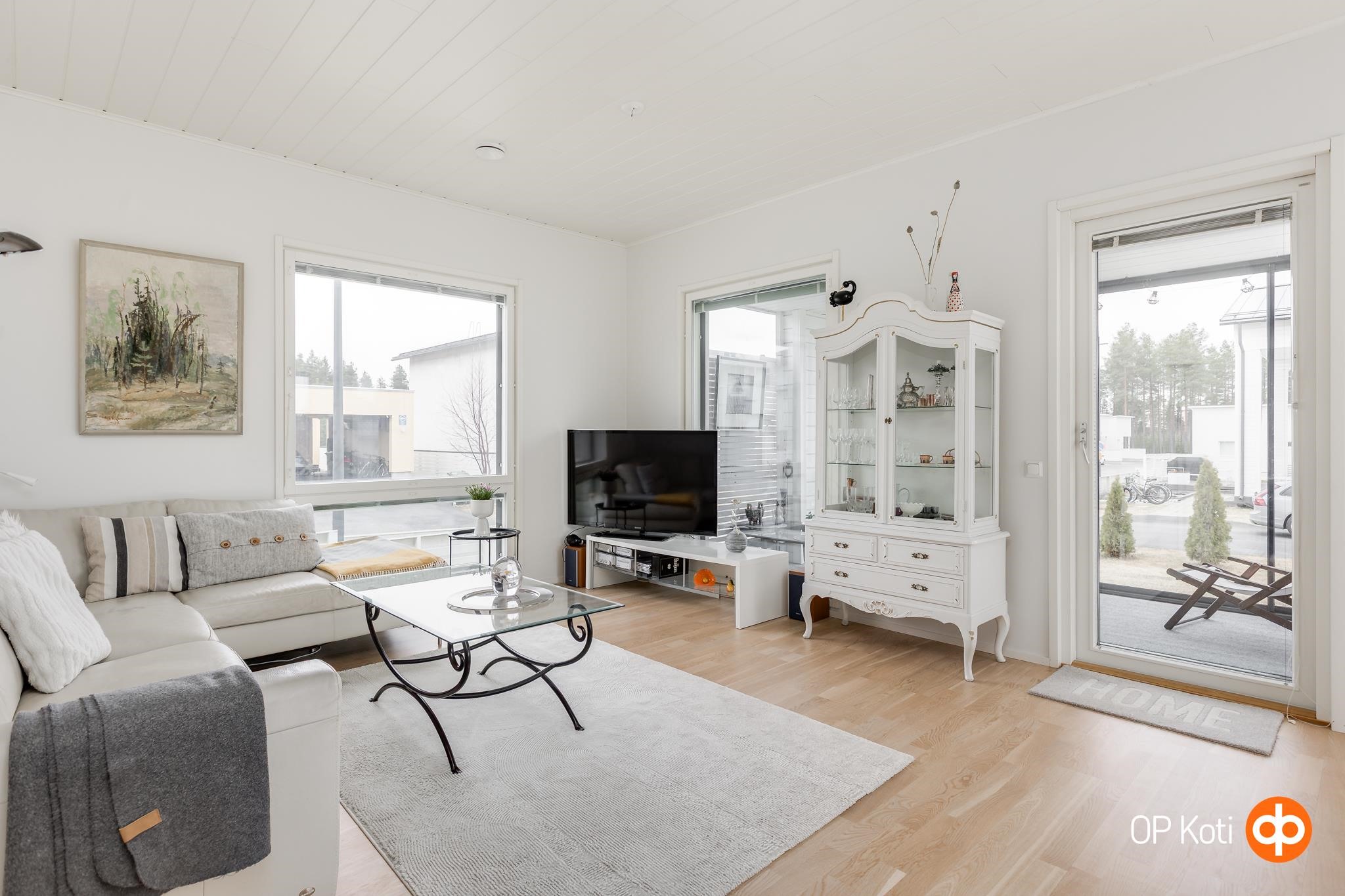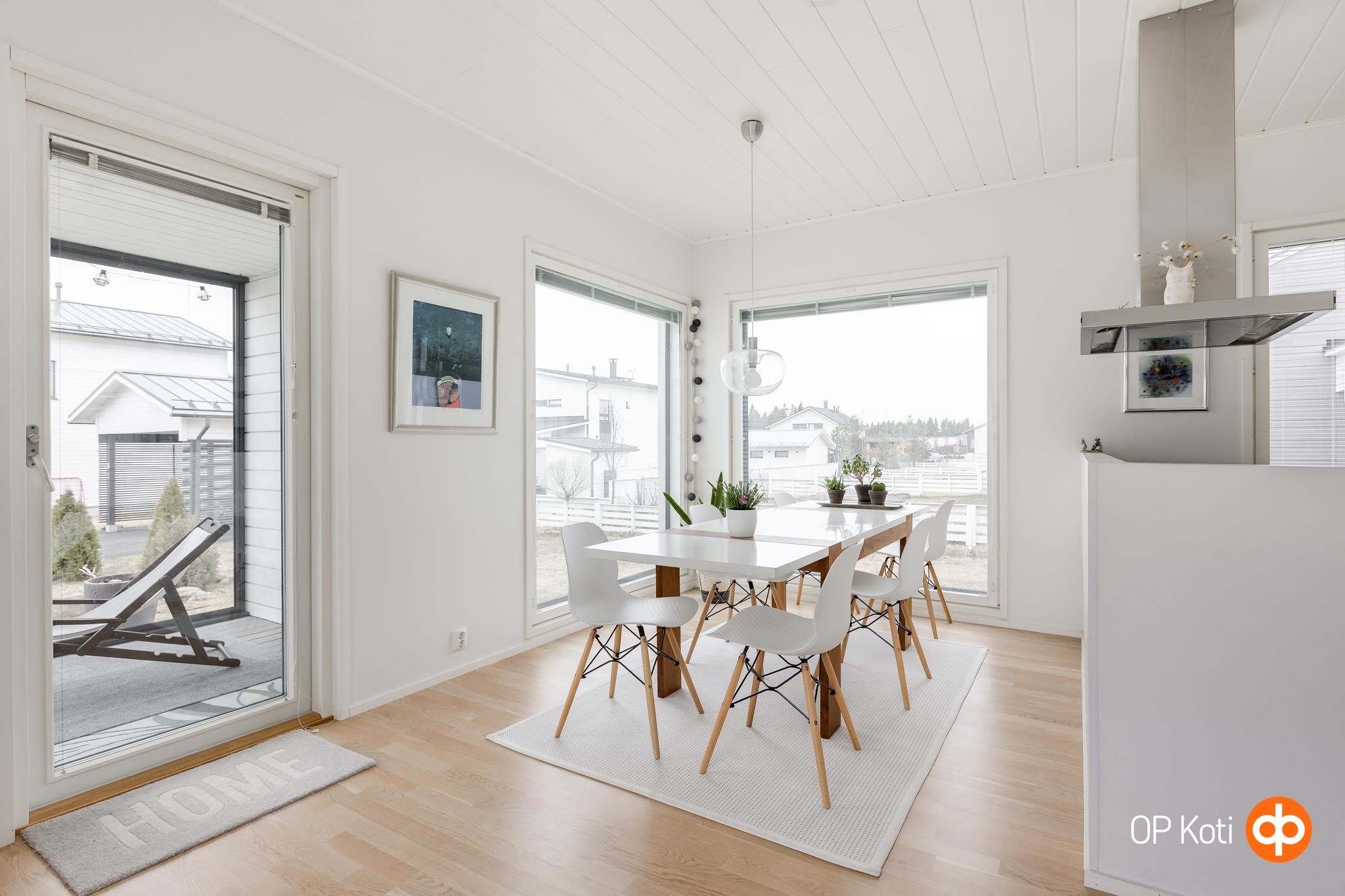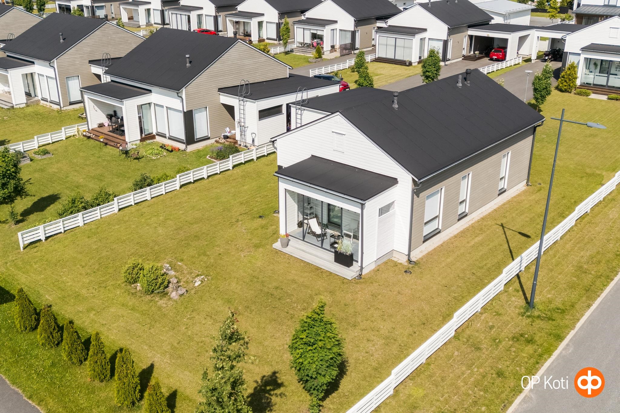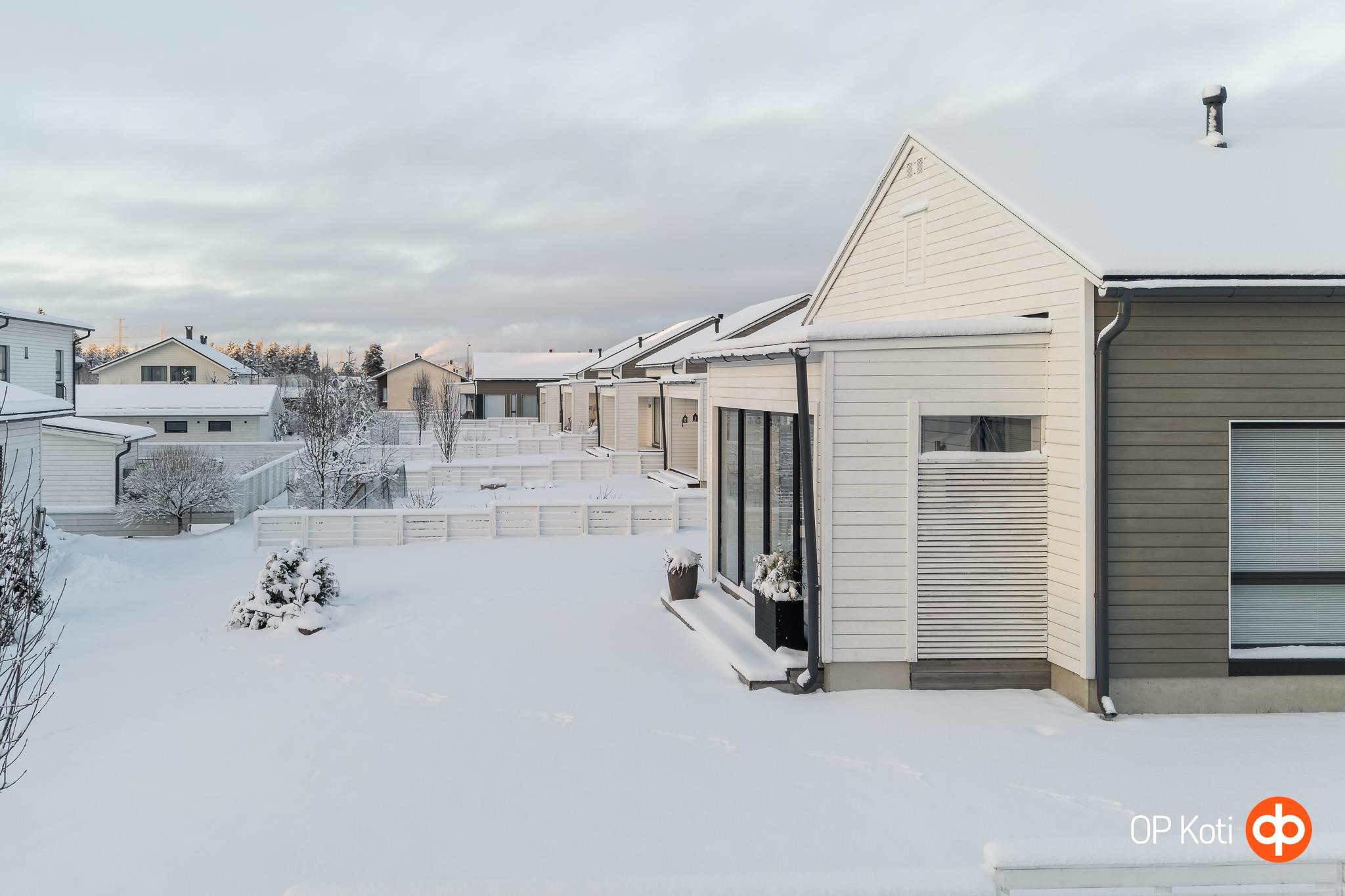 Kodin sydän on tilava olohuone, joka jatkuu saumattomasti lasitetulle terassille, täydellinen paikka rentoutumiseen säällä kuin säällä. Kodin toiminnallisuus on hiottu huippuunsa: tilava varasto sekä erillinen vaatehuone tarjoavat runsaasti säilytystilaa. Kodinhoitohuoneeseen on kätevä erillinen sisäänkäynti, mikä helpottaa arkea ja tuo lisää käytännöllisyyttä. Myös etupihan lasitettu terassi suojaa tuulelta ja tarjoaa mukavan oleskelupaikan.
