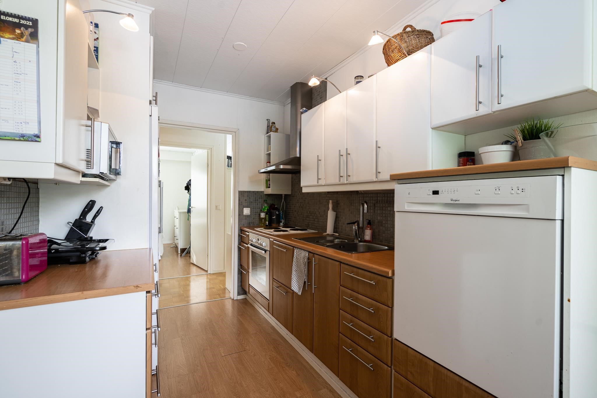 - Jääkaappi 2022, pakastekaappi 2022, erillisuuni, keraaminen liesi, liesituuletin, astianpesukone, kaapistot, kiinteät valaisimet. Keittiö on remontoitu, ajankohdasta ei ole tietoa