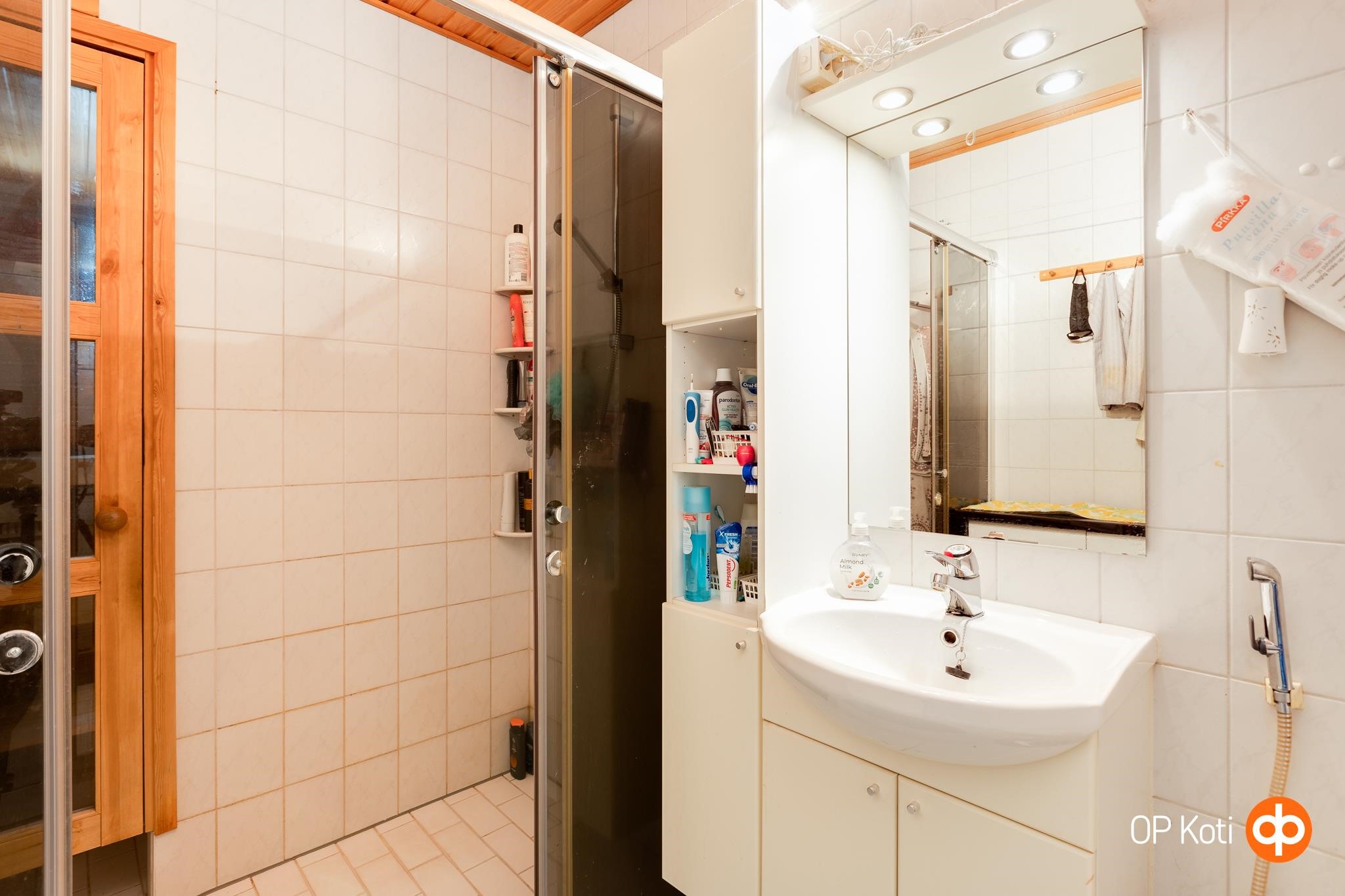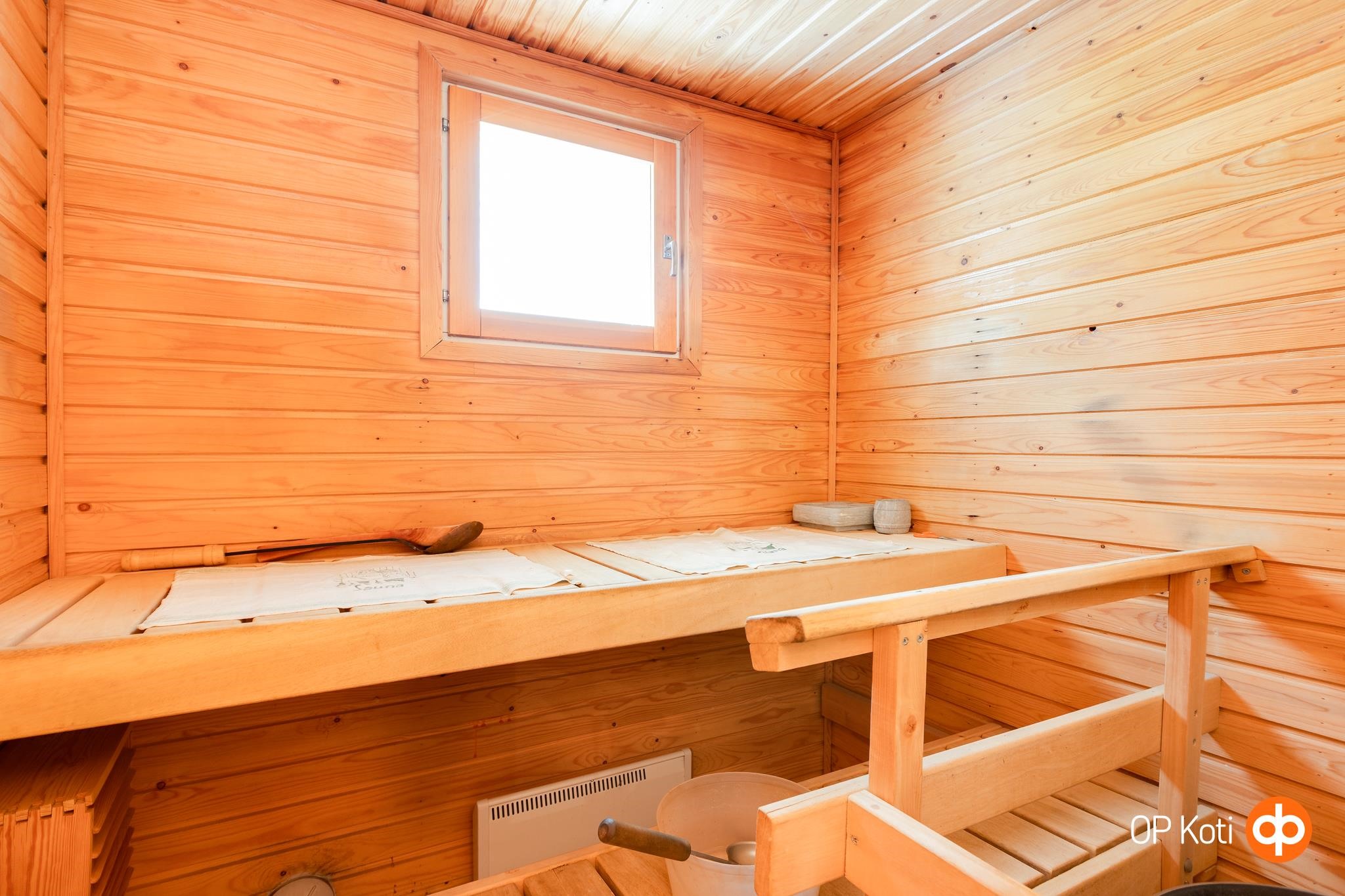 - Sauna, sähkökiuas, kylpyhuone, erillinen wc, suihku, suihkuseinä, peilit, peilikaappi, allaskaappi, pesukoneliitäntä, lattialämmitys, kiinteät valaisimet.