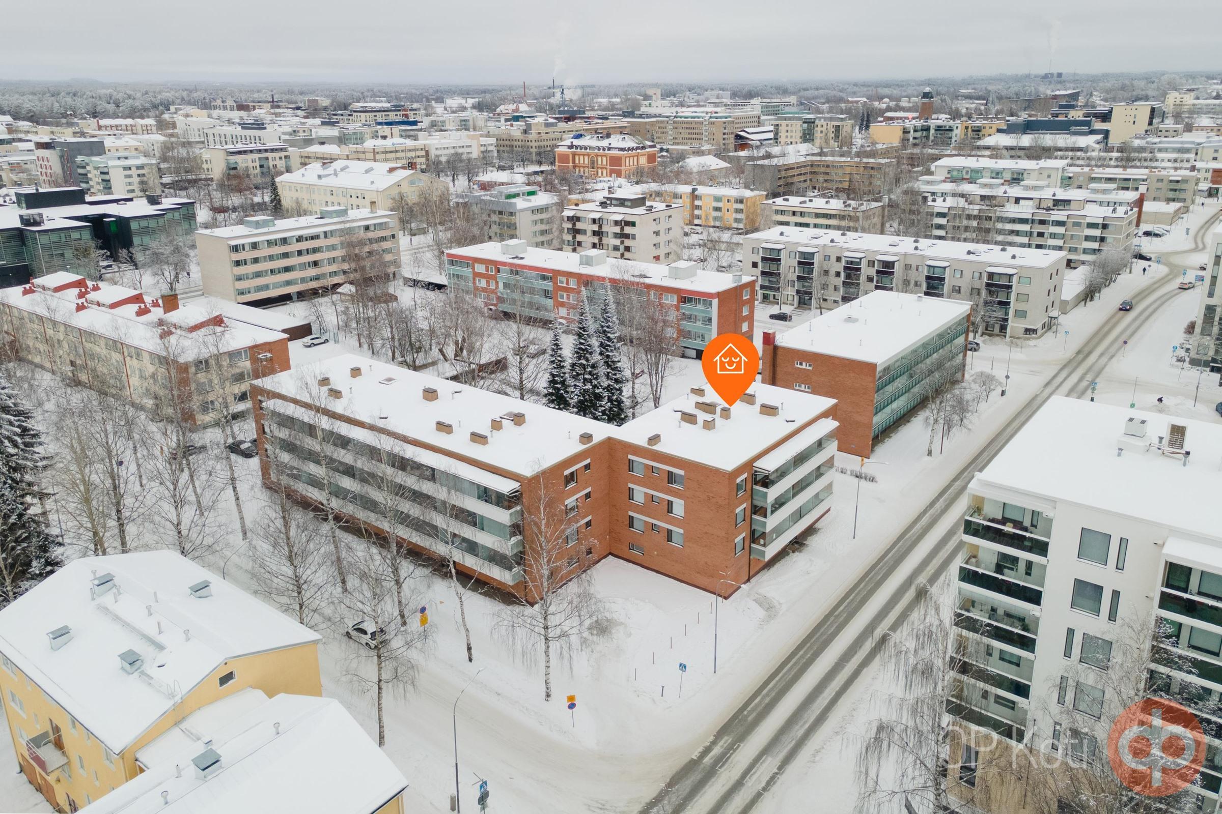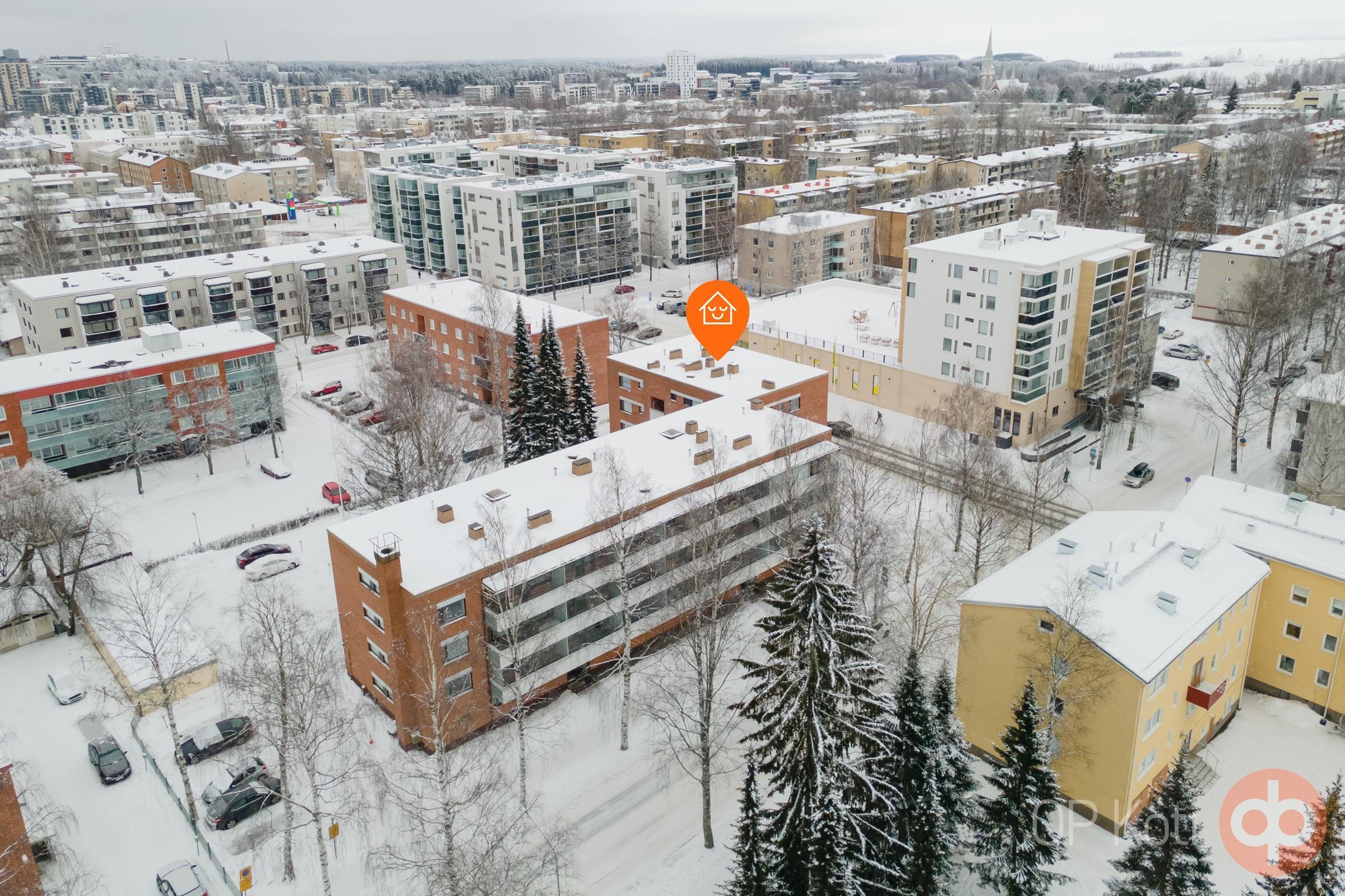 Arkea helpottaa kadun toisella puolella sijaitseva ruokakauppa, ja kaikki kaupungin palvelut, koulut, yliopisto sekä monipuoliset harrastusmahdollisuudet löytyvät kävelyetäisyydeltä. Loistava sijainti tekee tästä kodista houkuttelevan vaihtoehdon omaksi kodiksi.