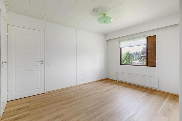 Keittiö: lattia kivi, seinät tapetti. Olohuone: lattia parketti, seinät maali. Makuuhuone 1: lattia parketti, seinät tapetti. Kodinhoitohuone: lattia laatta, seinät tapetti. Sauna: lattia laatta, seinät paneli. Kylpyhuone: lattia laatta, seinät laatta. Eteinen: lattia vinyyli, seinät tapetti. Wc: lattia laatta. Makuuhuoneet 2,3,4: lattia laminaatti, seinät tapetti.