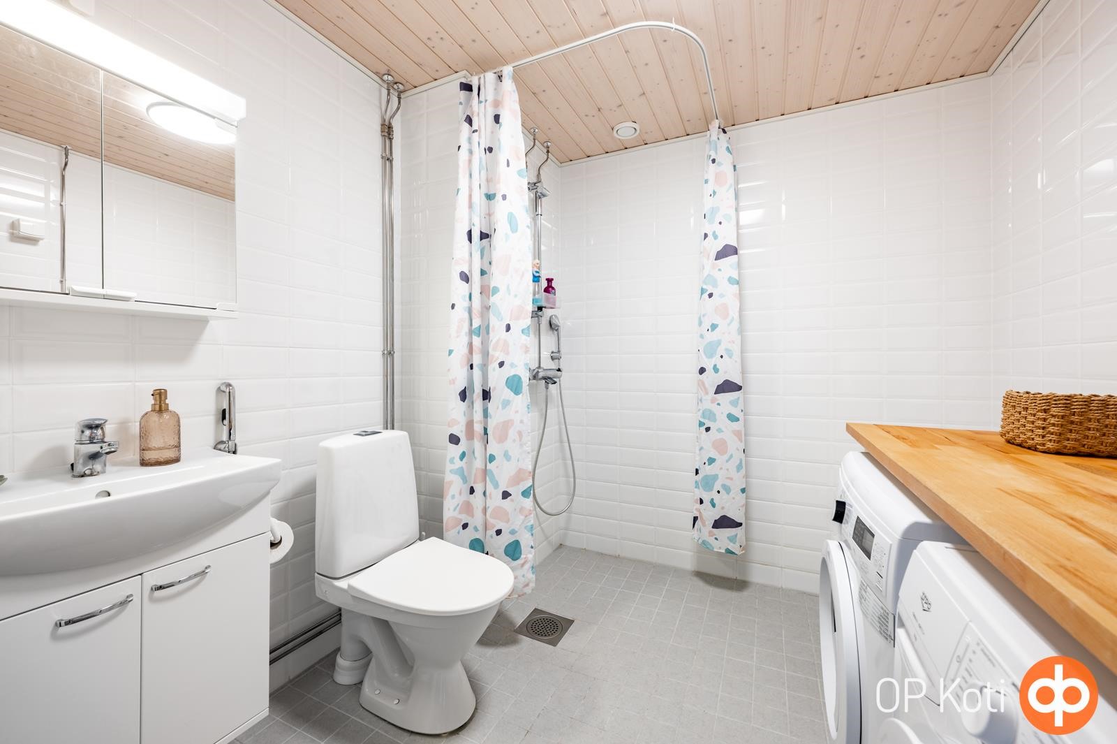 - Kylpyhuone, suihku, suihkuseinä, pesukoneliitäntä, lattialämmitys.