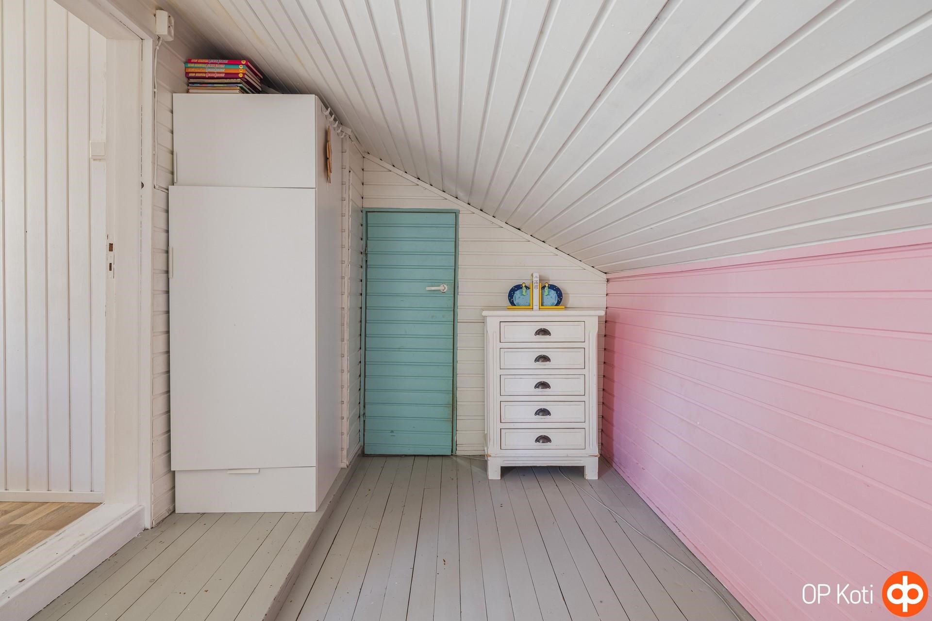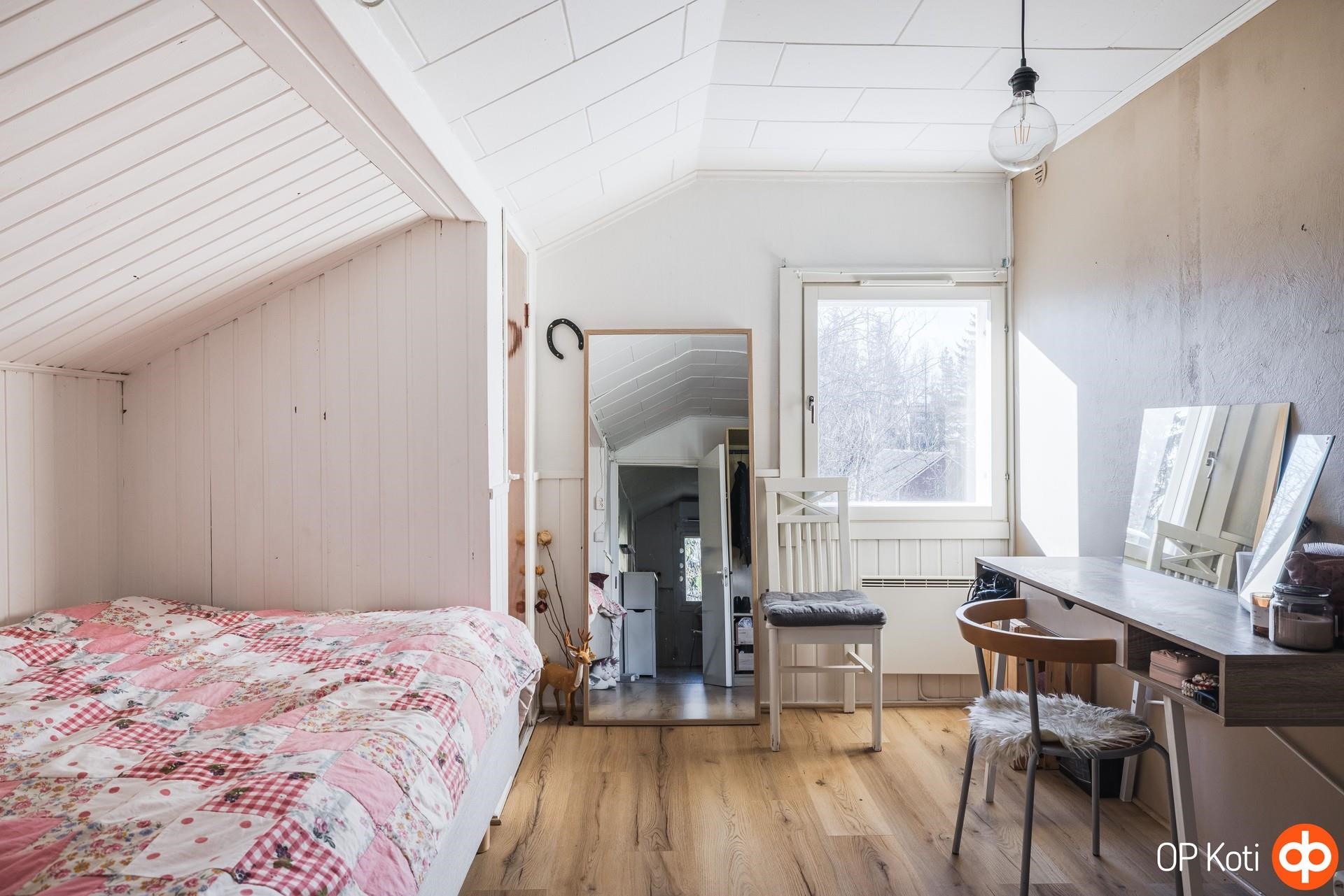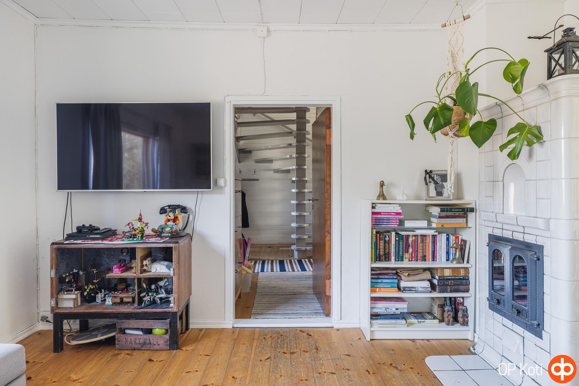 Sisääntulokerroksen perinteinen kuisti toivottaa tervetulleeksi. Alakerrassa sydämenä toimii kodikas keittiö ja sen jatkeena oleva avara ruokailutila, joka yhdessä olohuoneen kanssa kutsuu yhteisiin hetkiin. Olohuoneen varaava takka luo mainiosti lämpöä ja tunnelmaa. Tästä kerroksesta löytyy myös yksi lisähuone siipirakennuksen puolelta sekä wc. Siipirakennuksessa sijaitsevat suihku- ja saunatilat on remontoitu kattavasti vuonna 2018 sis. lattiavalut, viemäröinnit ja vesieristykset. Yläkerrassa on kolme makuuhuonetta, joiden vinokatot tuovat tilaan romanttista ja persoonallista 50-luvun tuntua. Yläkerrassa on myös oma wc.
