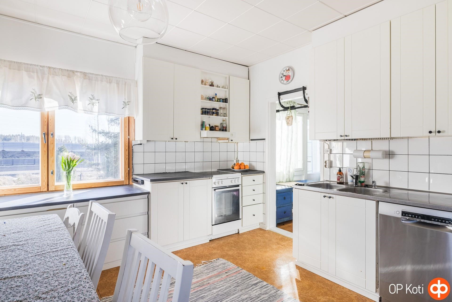- Jääkaappi 2014, sähköliesi, keraaminen liesi, liesituuletin, astianpesukone 2023, kaapistot. Ovet ja tasot uusittu 2020.