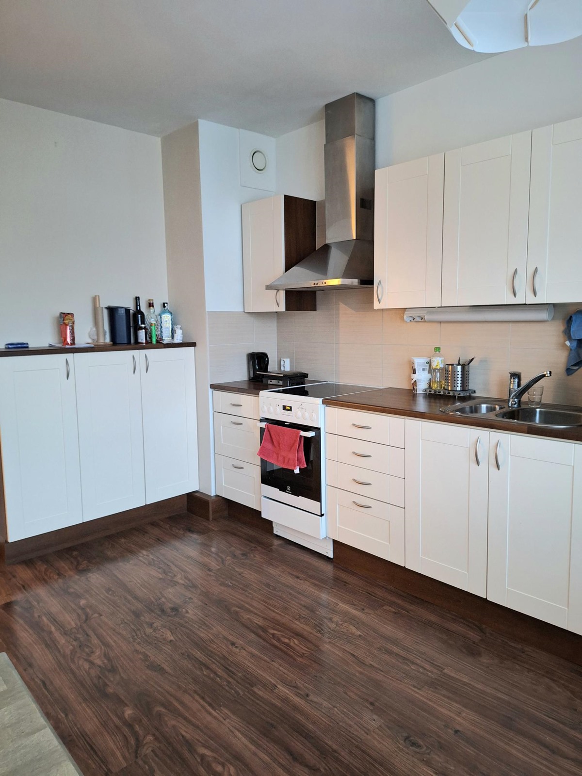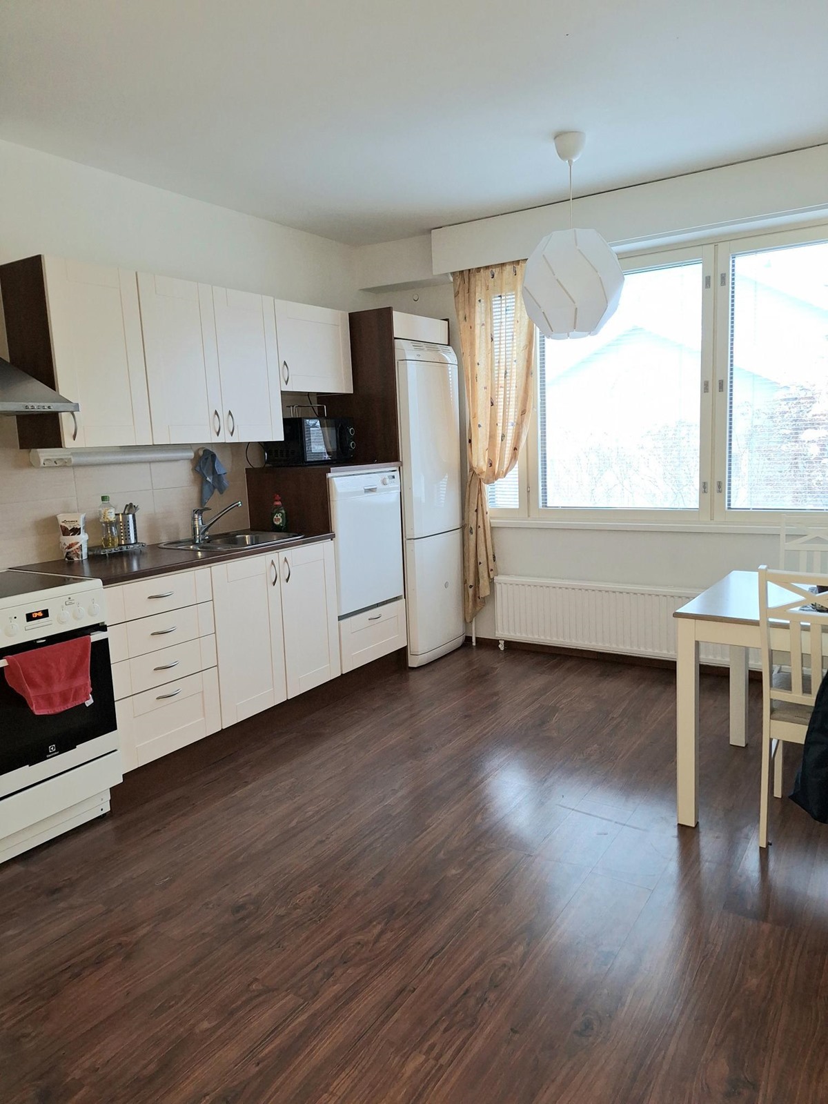 - Jääkaappipakastin, keraaminen liesi, liesituuletin, astianpesukone, kaapistot, kiinteät valaisimet.