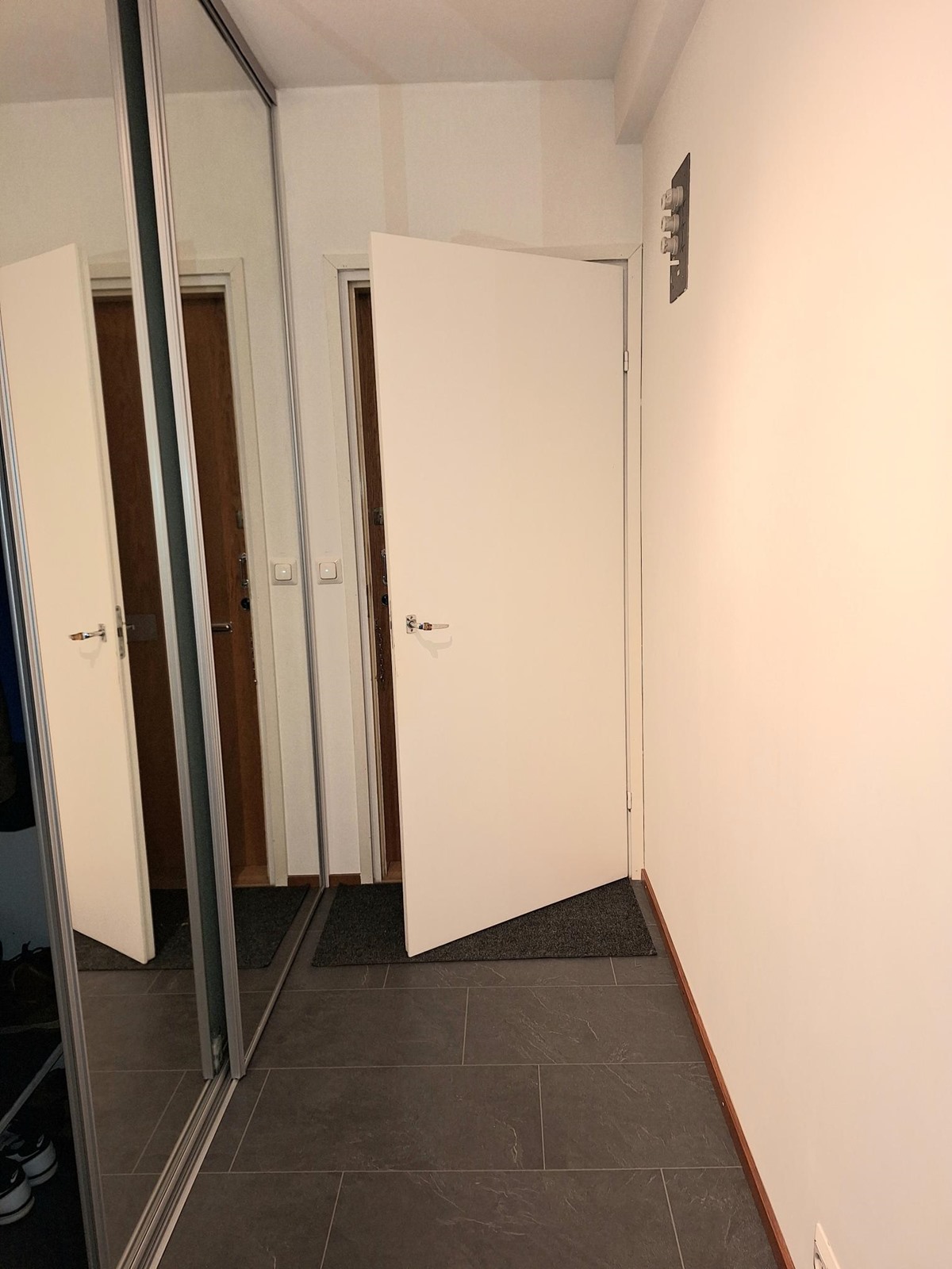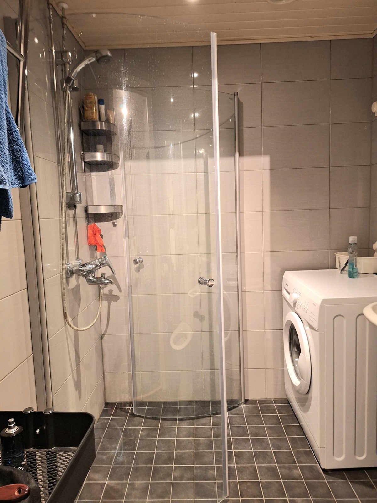 - Kylpyhuone, suihku, suihkuseinä, peilikaappi, pesukoneliitäntä, lattialämmitys, kiinteät valaisimet.
