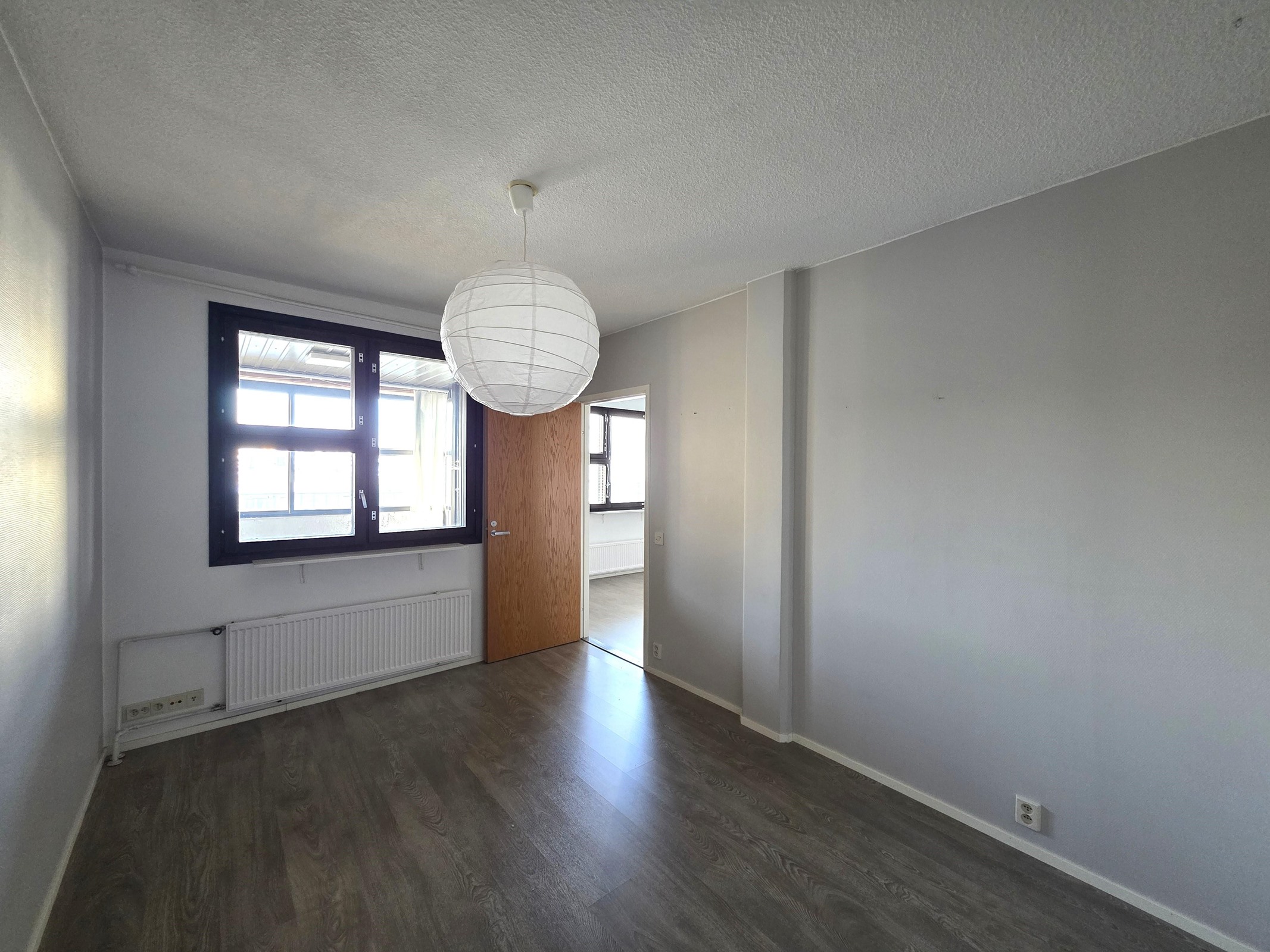 59 neliön huoneistossa on tilava olohuone, erillinen keittiö, makuuhuone, vaatehuone sekä erillinen wc ja kylpyhuone. Harmaa laminaattilattia ja vaaleat maalatut seinät tuovat modernia ilmettä. Lasitettu parveke soveltuu monipuoliseen käyttöön.