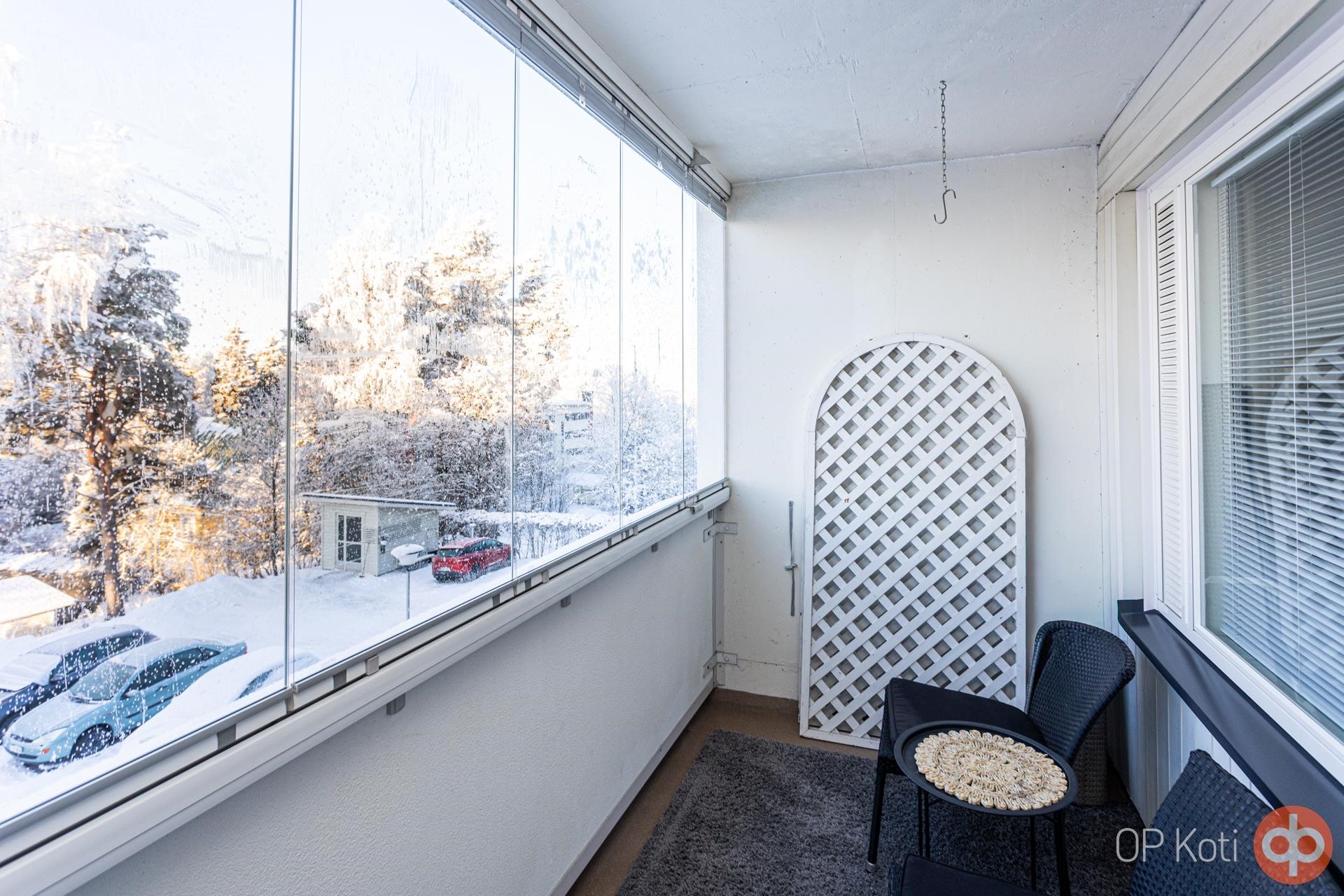 Länteen suuntautuva koko asunnon levyinen lasitettu parveke tarjoaa upean paikan nauttia ilta-auringosta. Toisessa kerroksessa sijaitseva koti on helposti saavutettavissa hissillä, ja taloyhtiössä kaikki asiat ovat kunnossa mm. tänä vuonna on suunnitteilla katon pinnoitteen uusiminen.