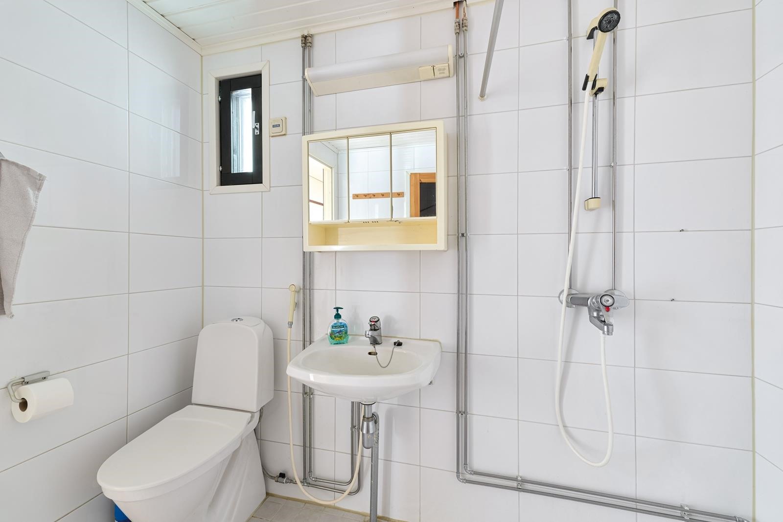 - Sauna, sähkökiuas, kylpyhuone, suihku, pesukoneliitäntä.
