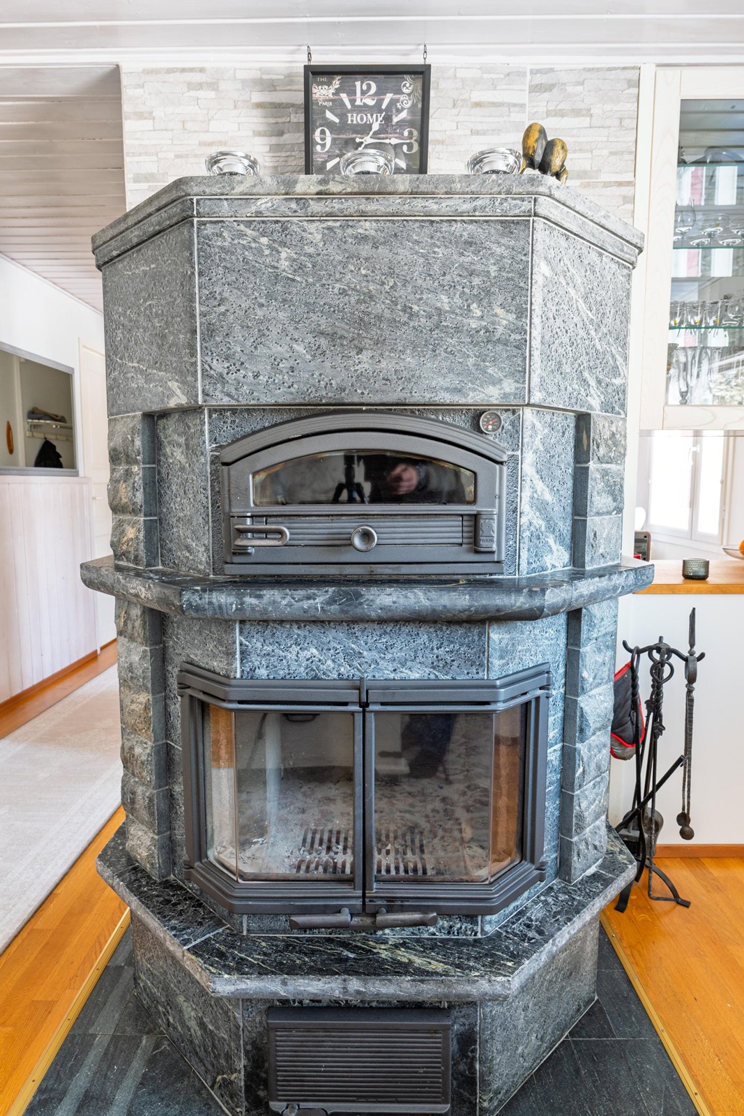 - Sähkö. Sähkölämmitys, varaava takka, kaksi ilmalämpöpumppua ylä-, ja alakerrassa, koneelinen ilmanvaihto lämmön talteenotolla.