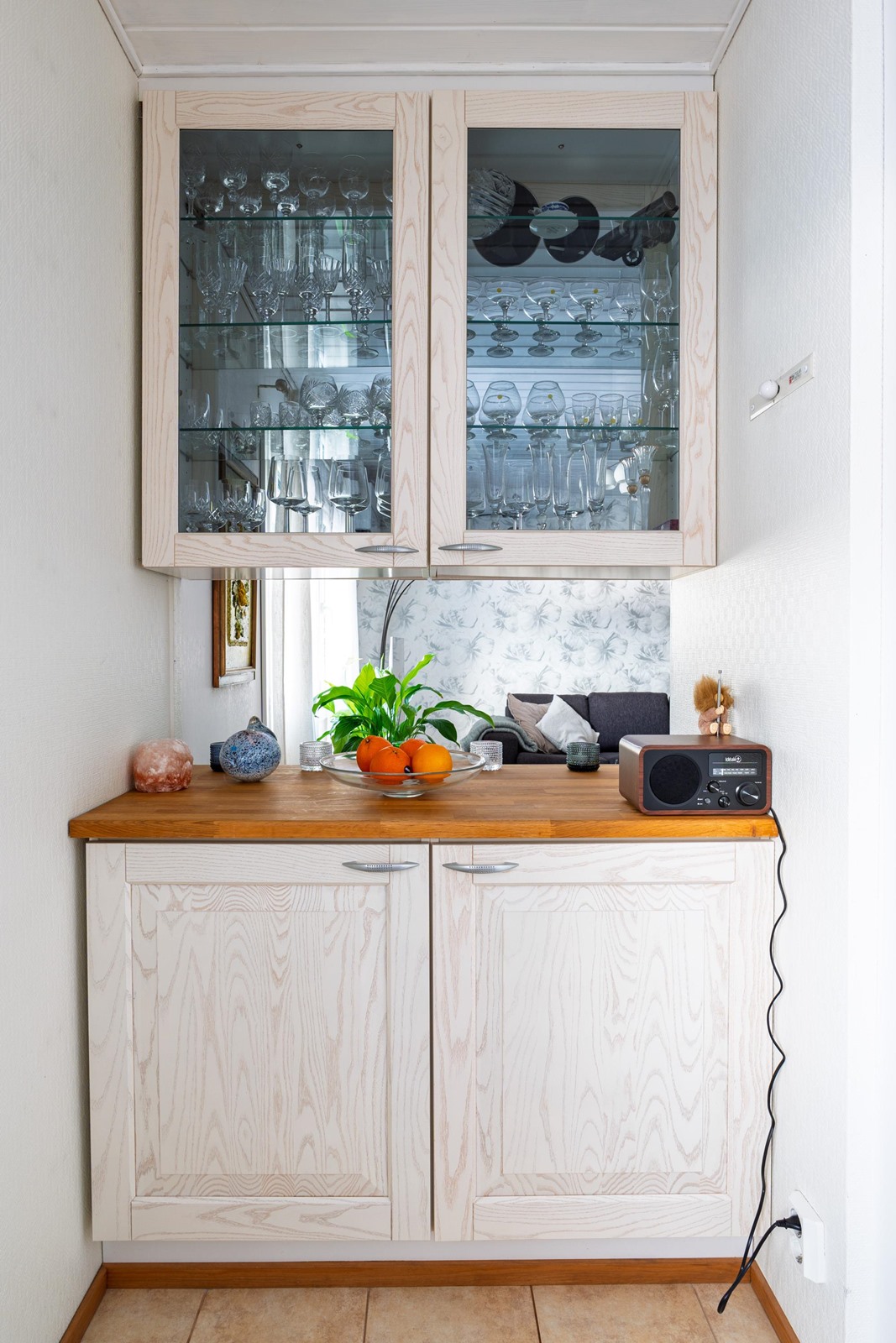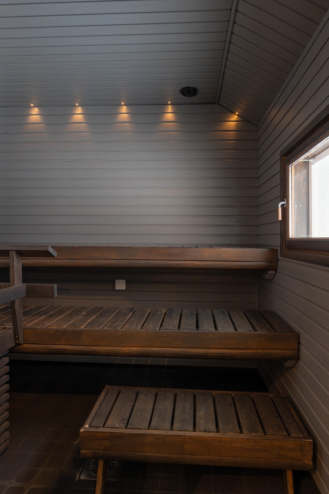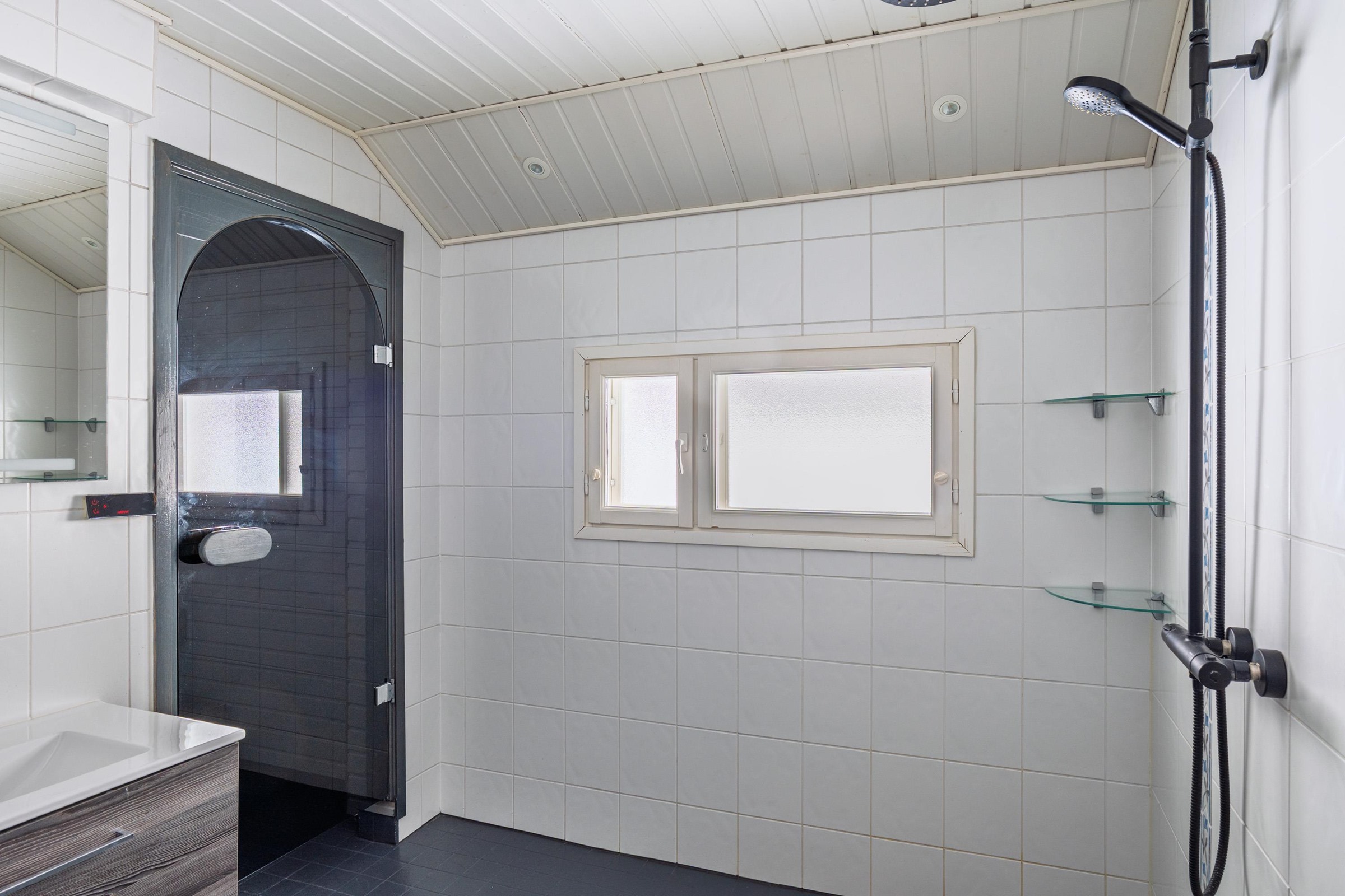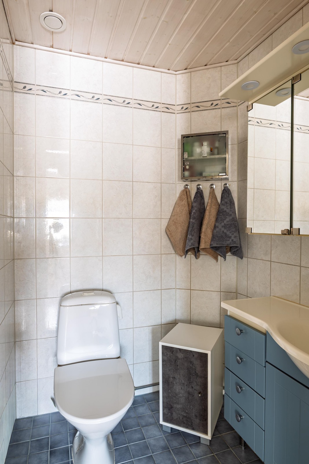 - Sauna: sähkökiuas. Kylpyhuone: wc, suihku, peili valolla, allaskaappi, pystykaappi. Kodinhoitohuone: pesukoneliitäntä, kaapistot. Wc: allaskaappi, peilikaappi.
