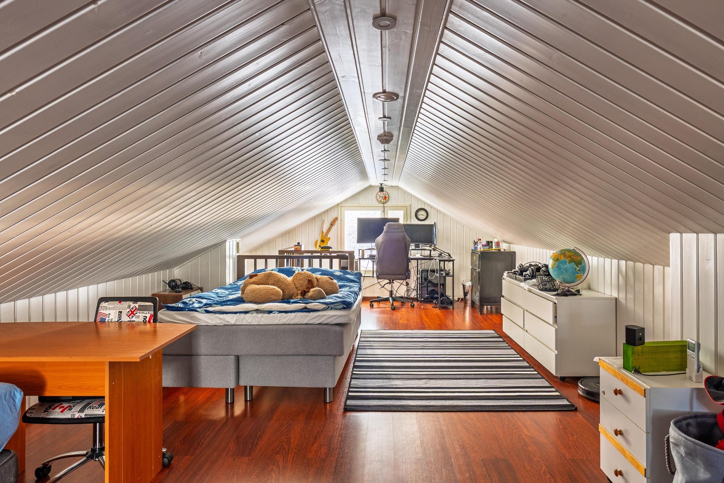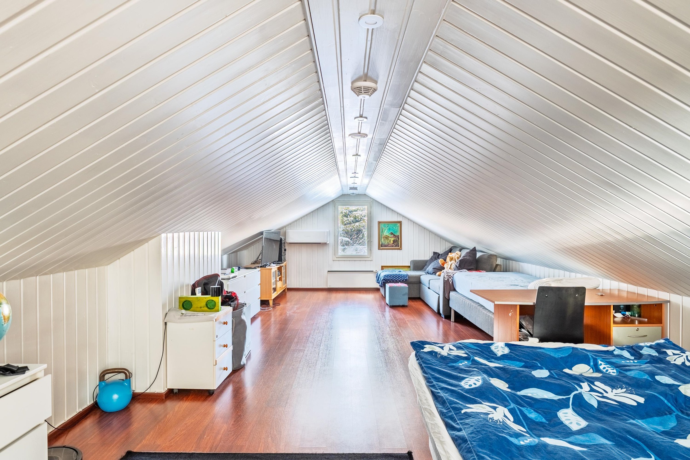 Yläkerta on otettu käyttöön vuonna 2007, jolloin taloon saatiin 18,5 m2 lisätilaa. Tila muuntautuu joustavasti esimerkiksi makuuhuoneeksi, työtilaksi tai harrastekäyttöön, omien tarpeidesi mukaan. Autotalli tarjoaa lisäksi kätevän säilytys- ja suojapaikan autolle tai vapaa-ajan välineille.