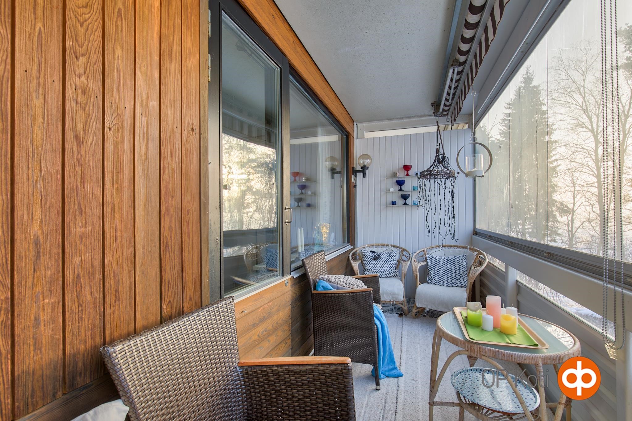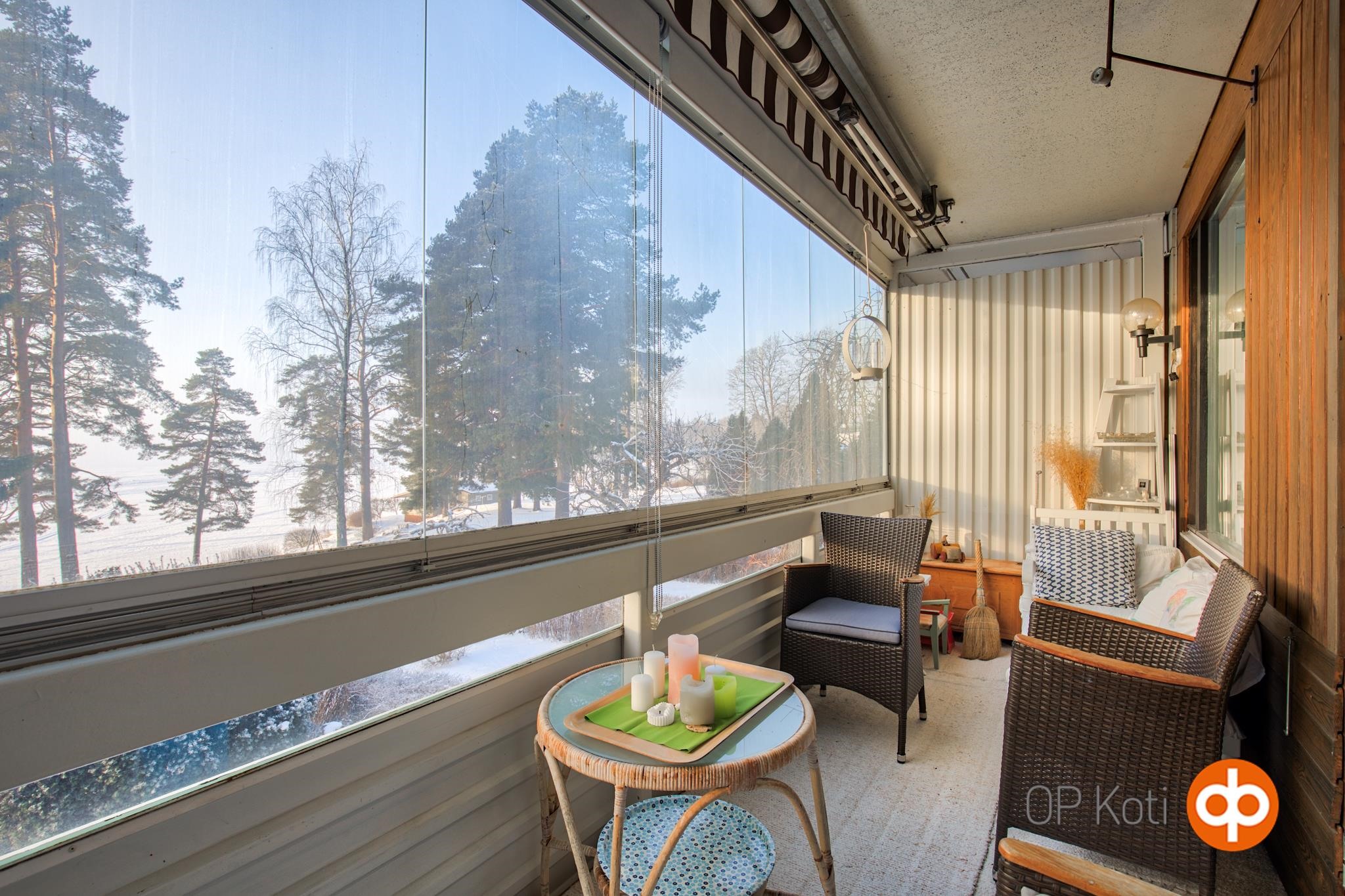 - Lasitettu parveke Pyhäjärven/etelän suuntaan.