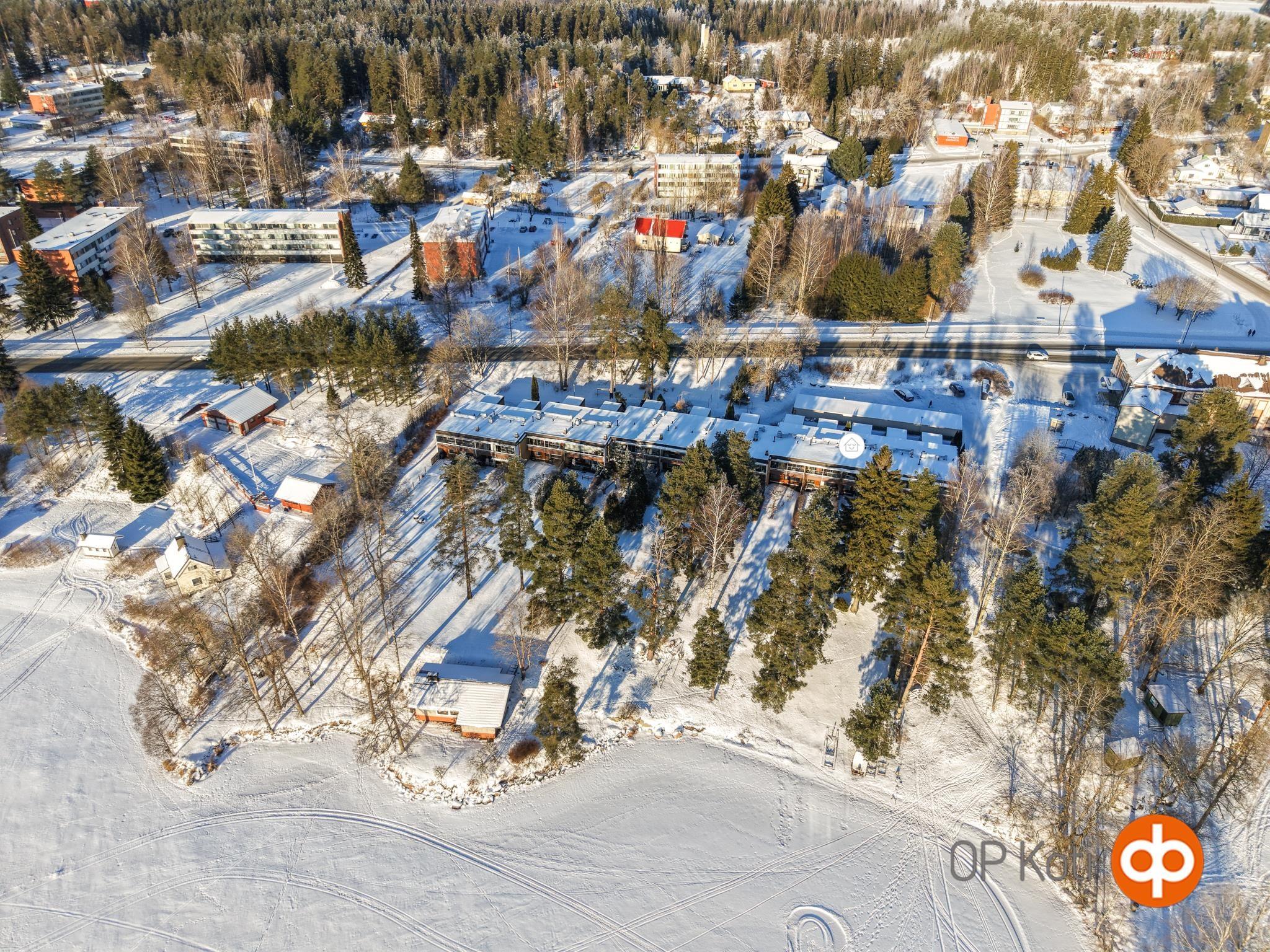 Taloyhtiön tontti rajoittuu Pyhäjärveen.