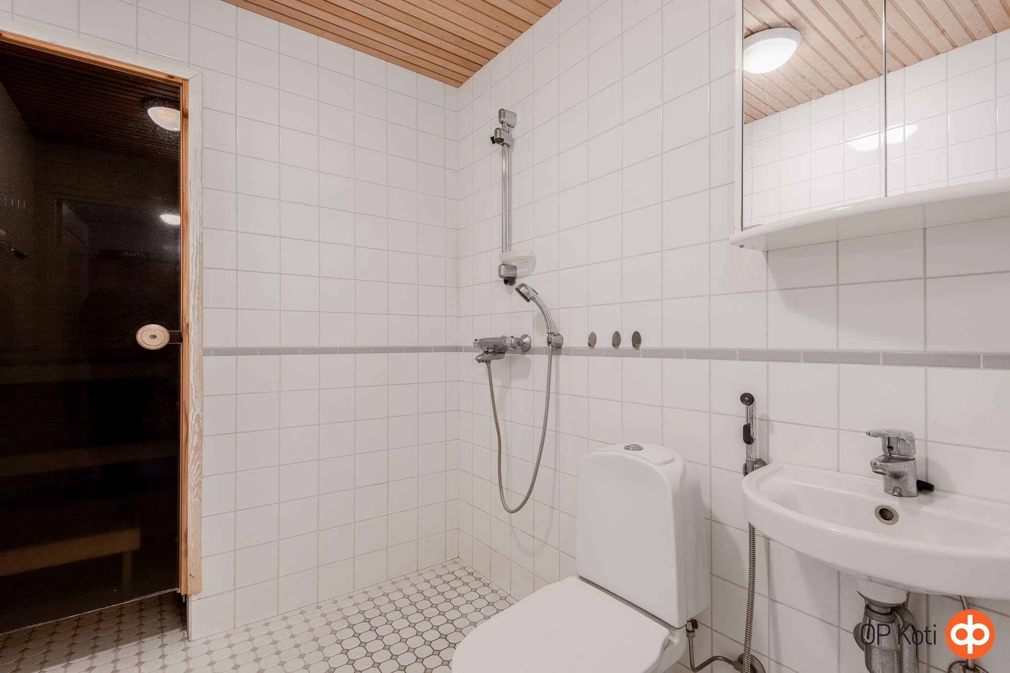 - Sauna, sähkökiuas, kylpyhuone, erillinen wc, suihku, peilit, peilikaappi, allaskaappi, pesukoneliitäntä, lattialämmitys, kiinteät valaisimet.