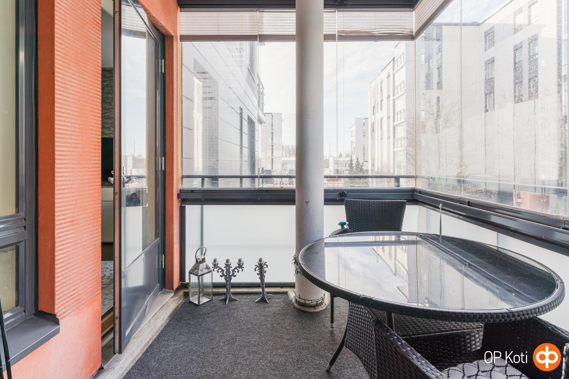- Tilava parveke; näkymät etelän ja lännen suuntaan