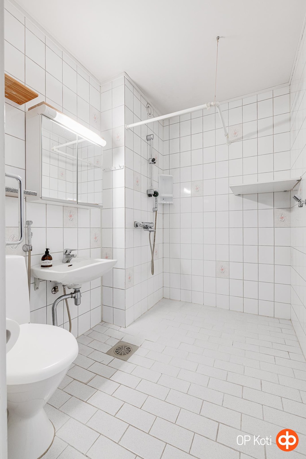 - Kylpyhuone, suihku, peilit, kaapit, pesukoneliitäntä, kiinteät valaisimet.