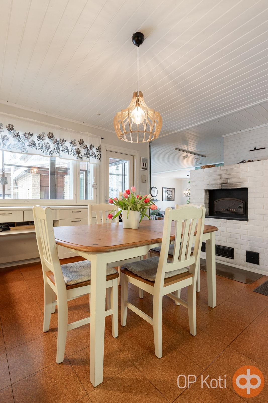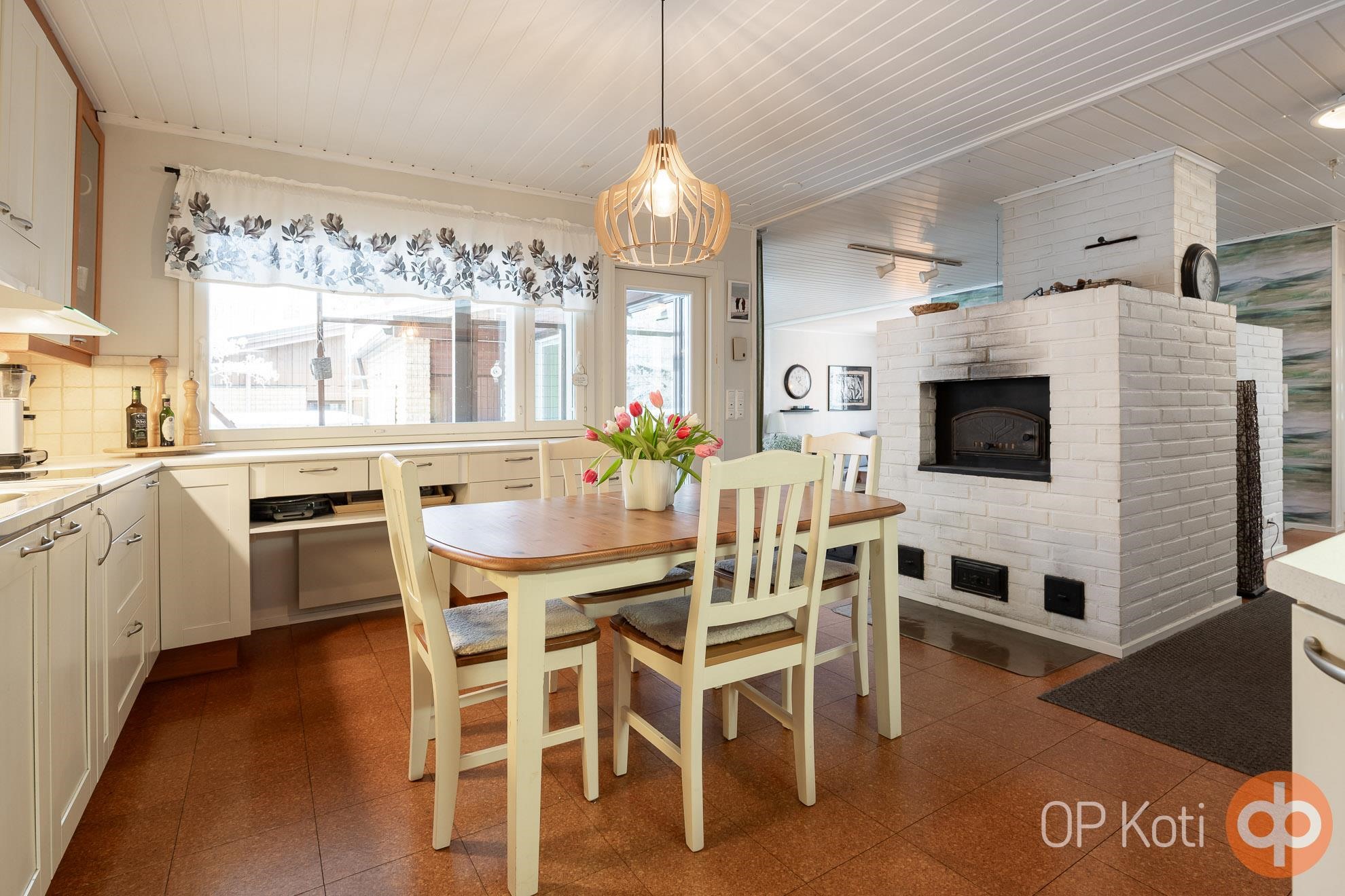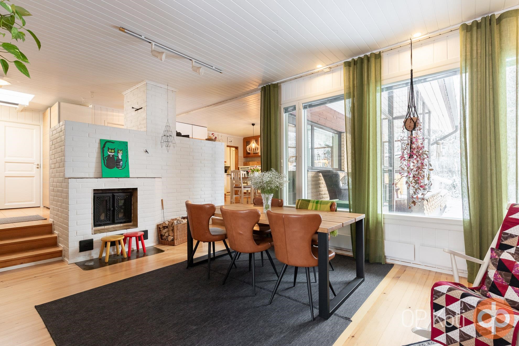 Koti, jossa arki toimii ja tunnelma kutsuu viihtymään. Tämä huolella pidetty talo tarjoaa neljä makuuhuonetta sekä runsaasti käytännöllistä tilaa koko perheelle. Yksi makuuhuoneista sijaitsee omassa rauhassaan ja sen yhteydessä on oma wc, täydellinen ratkaisu vanhempien makuutilaksi tai työhuoneeksi. Kodin sydän on olohuone, joka on tyylikkäästi porrastettu alemmalle tasolle. Leivinuuni ja takka tuovat lämpöä, ilmettä ja tunnelmaa vuoden ympäri. Selkeä pohjaratkaisu ja valoisat tilat tekevät kokonaisuudesta toimivan ja helposti muunneltavan. Sijainti Länsi-Peitsarissa on rauhallinen ja arvostettu. Palvelut ja keskustan tarjonta ovat lyhyen matkan päässä, vaikka pyörällä kuljettuna. Tontti rajoittuu puistoon, mikä tekee pihasta suojaisan alueen lapsille sekä lemmikeille.