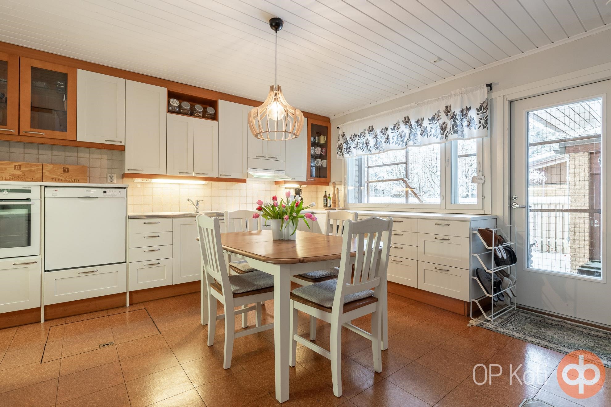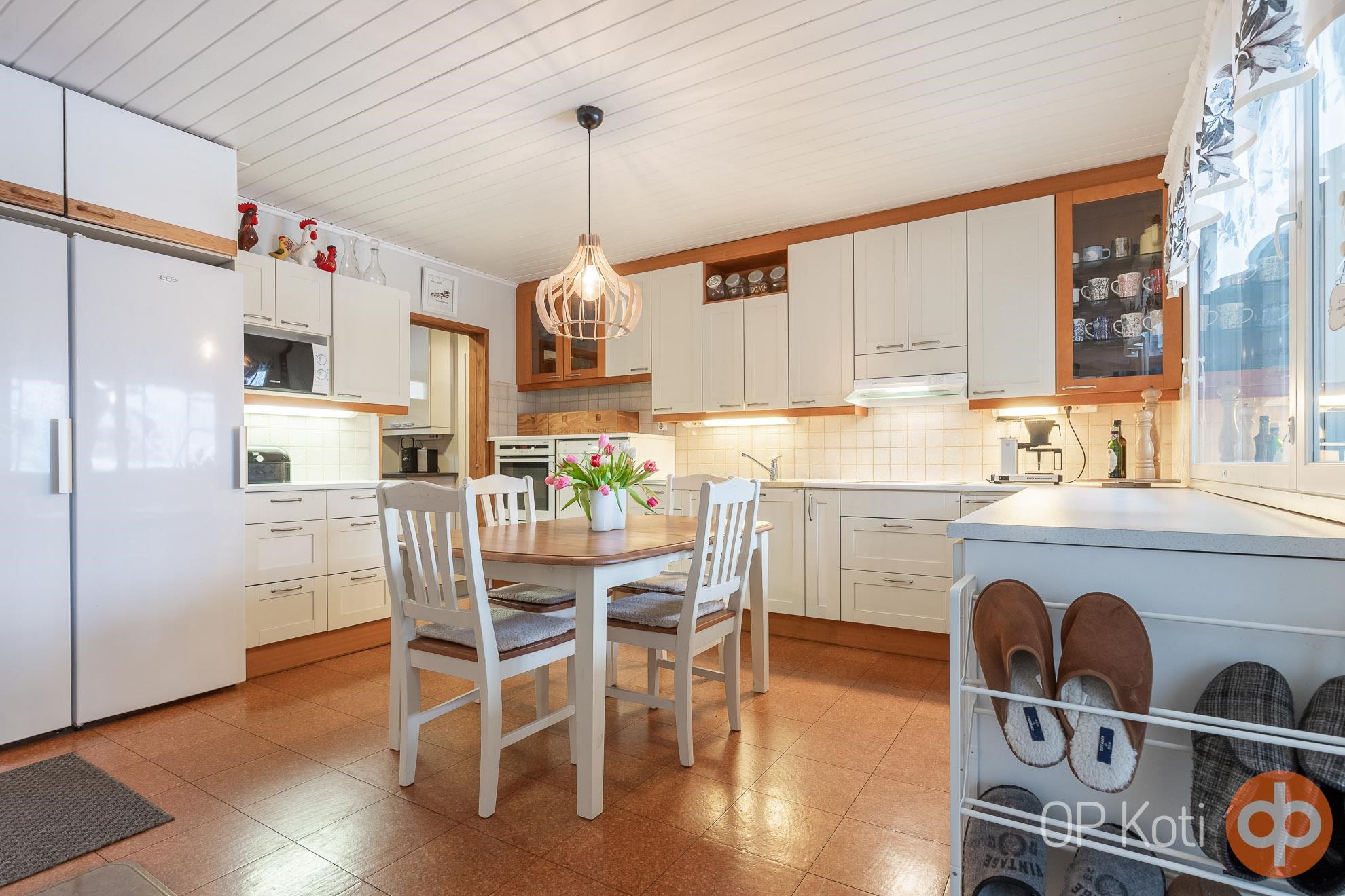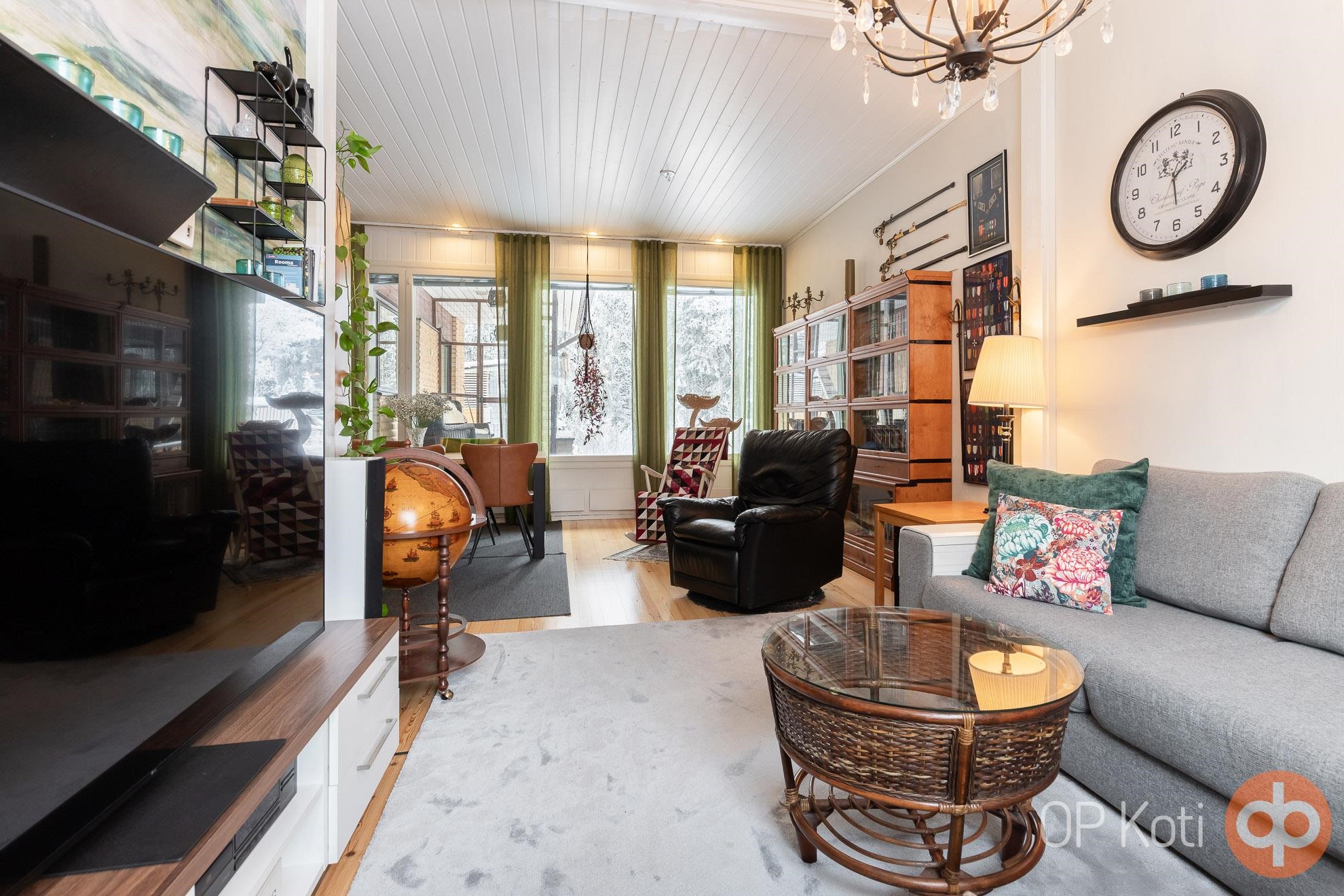 Koti, jossa arki toimii ja tunnelma kutsuu viihtymään. Tämä huolella pidetty talo tarjoaa neljä makuuhuonetta sekä runsaasti käytännöllistä tilaa koko perheelle. Yksi makuuhuoneista sijaitsee omassa rauhassaan ja sen yhteydessä on oma wc, täydellinen ratkaisu vanhempien makuutilaksi tai työhuoneeksi. Kodin sydän on olohuone, joka on tyylikkäästi porrastettu alemmalle tasolle. Leivinuuni ja takka tuovat lämpöä, ilmettä ja tunnelmaa vuoden ympäri. Selkeä pohjaratkaisu ja valoisat tilat tekevät kokonaisuudesta toimivan ja helposti muunneltavan. Sijainti Länsi-Peitsarissa on rauhallinen ja arvostettu. Palvelut ja keskustan tarjonta ovat lyhyen matkan päässä, vaikka pyörällä kuljettuna. Tontti rajoittuu puistoon, mikä tekee pihasta suojaisan alueen lapsille sekä lemmikeille.