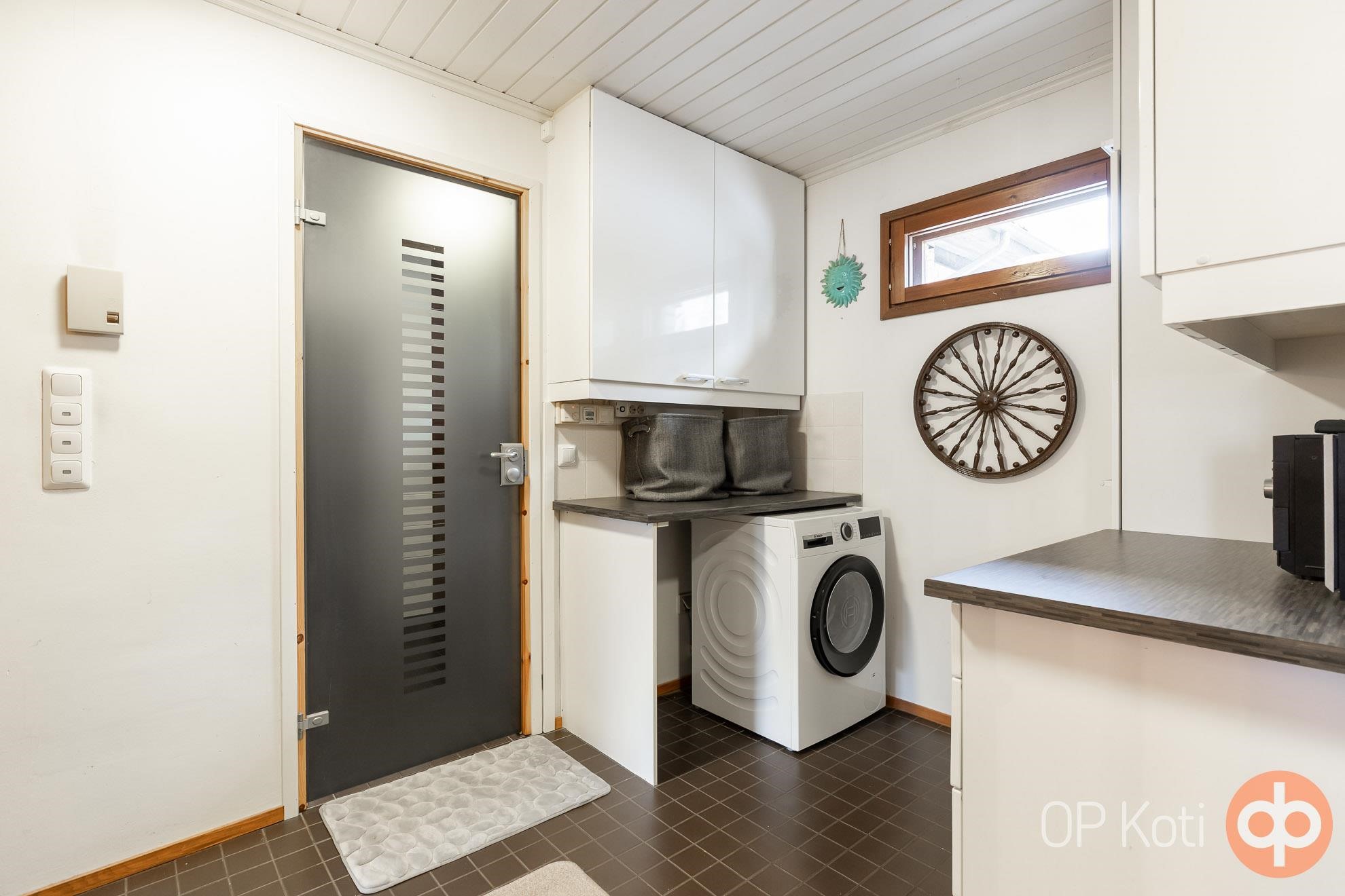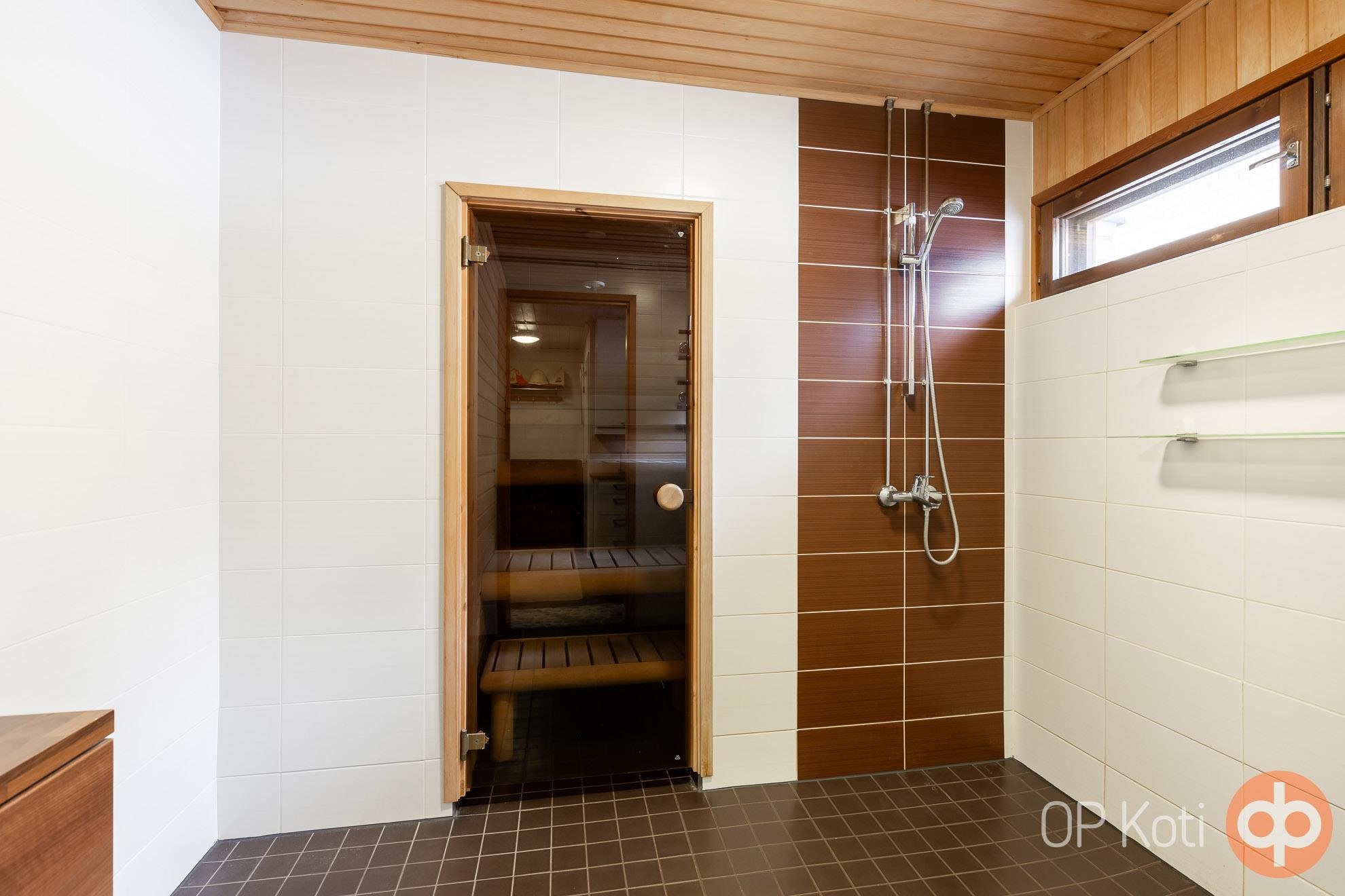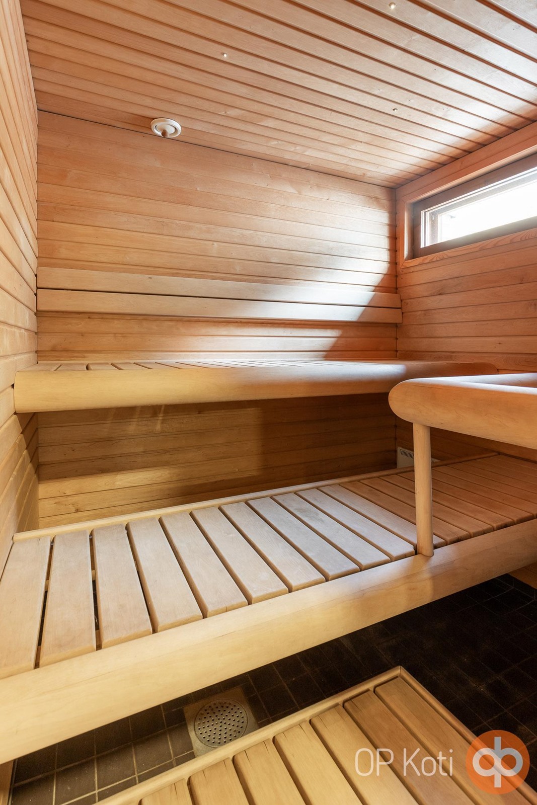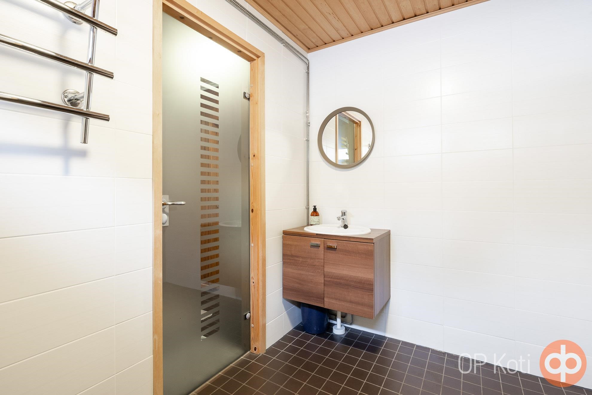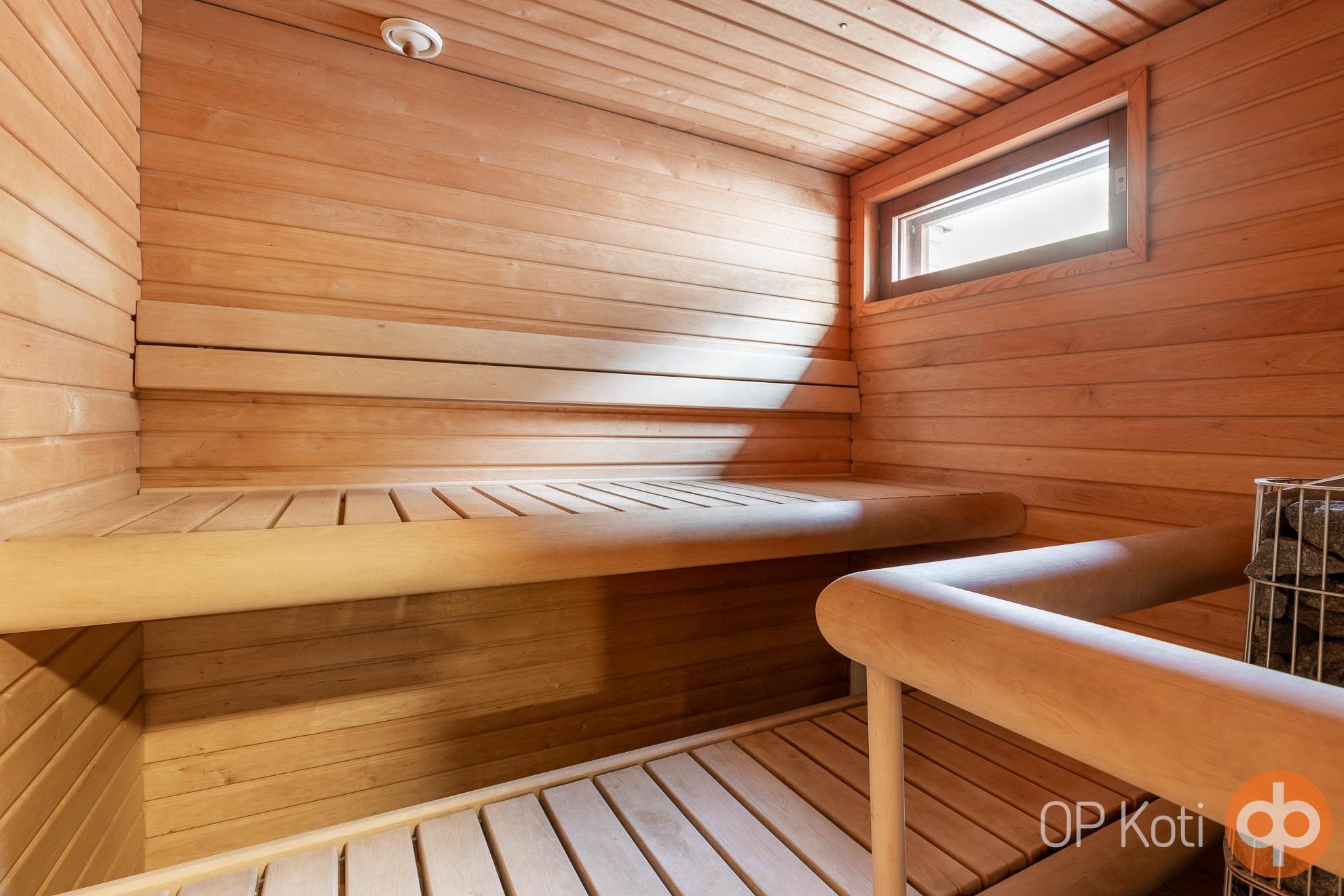 - Sauna, sähkökiuas, kylpyhuone, erillinen wc (2 erillistä wc:tä), suihku, peilit, peilikaappi, kaapit, allaskaappi, pesukoneliitäntä (khh:ssa), lattialämmitys (khh:ssa, pesuhuoneessa ja toisessa wc:ssä). pyyhekuivain . Remontoitu 2009