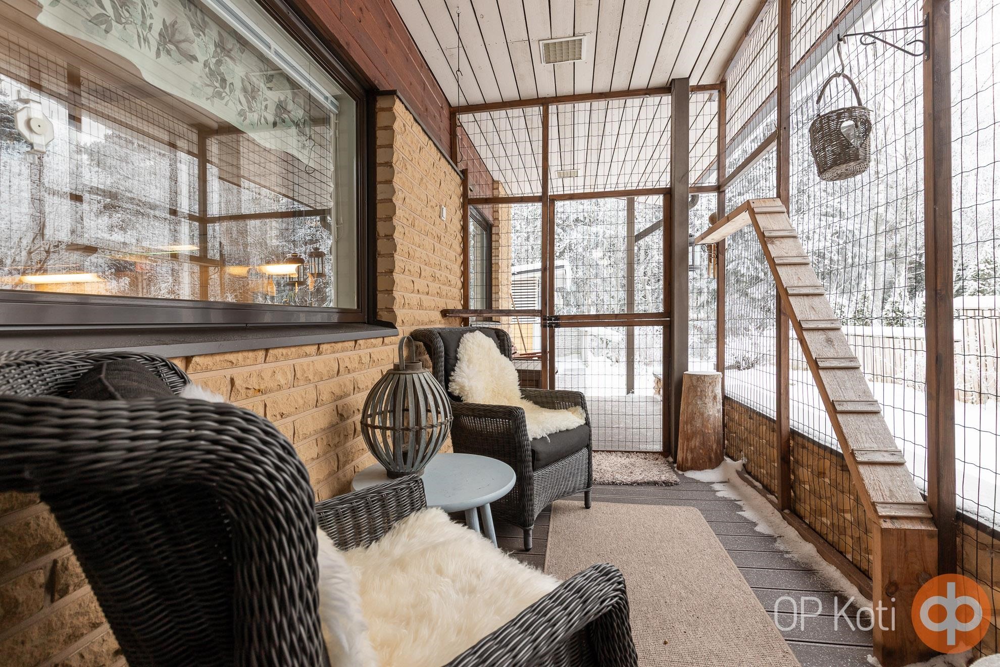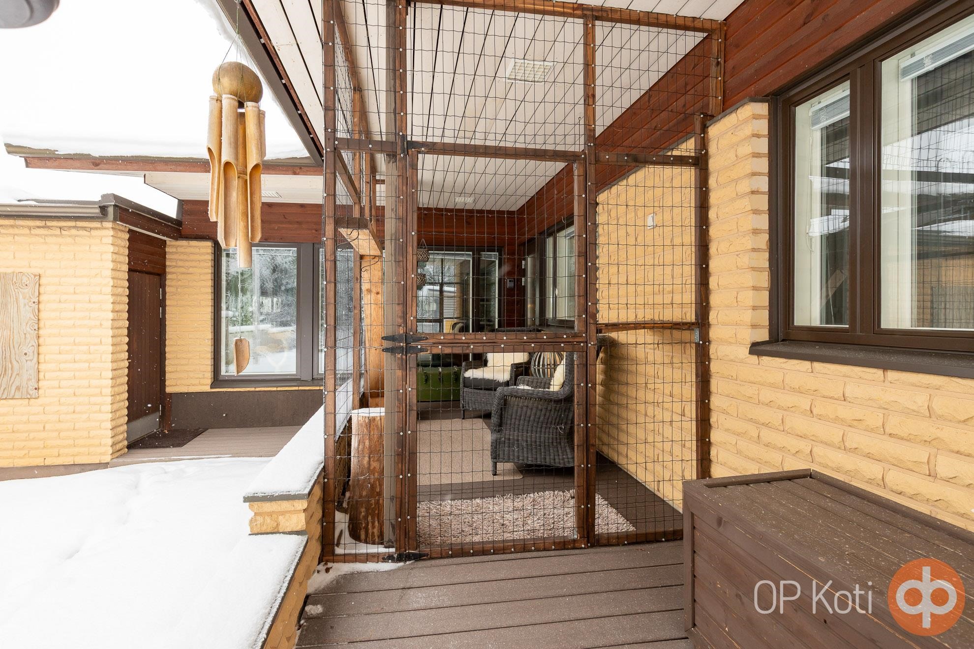 Terassilla oleva kissatarha voi jäädä tai se voidaan purkaa.