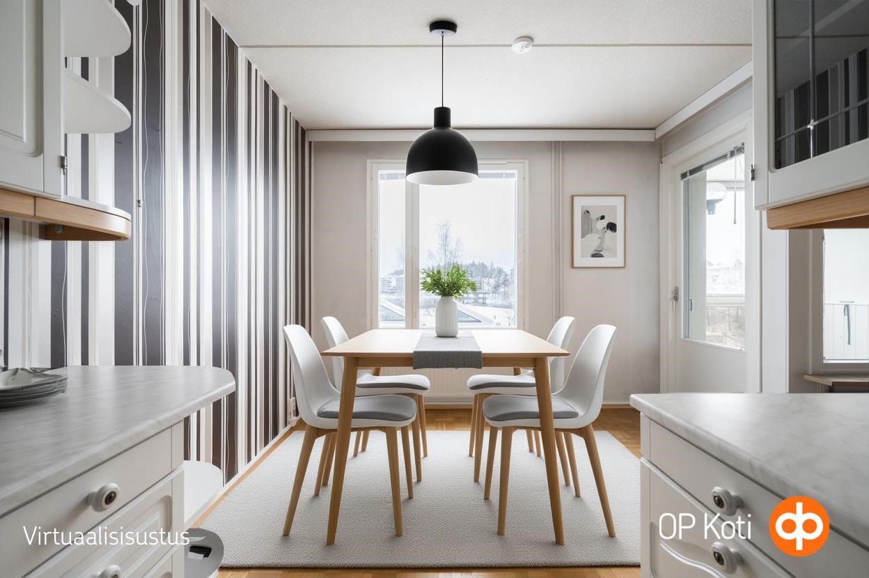 Tässä asunto sinulle, joka etsit kolmiota läheltä keskustan palveluja. Asunto sijaitsee toisessa kerroksessa ja talosta löytyy myös hissi. Bonuksena on keittiön ja olohuoneen näkymät Jyrängönvirralle, jossa maisema vaihtuu aina vuodenaikojen mukaan. Ota yhteyttä ja lähdetään katsomaan uutta kotiasi.