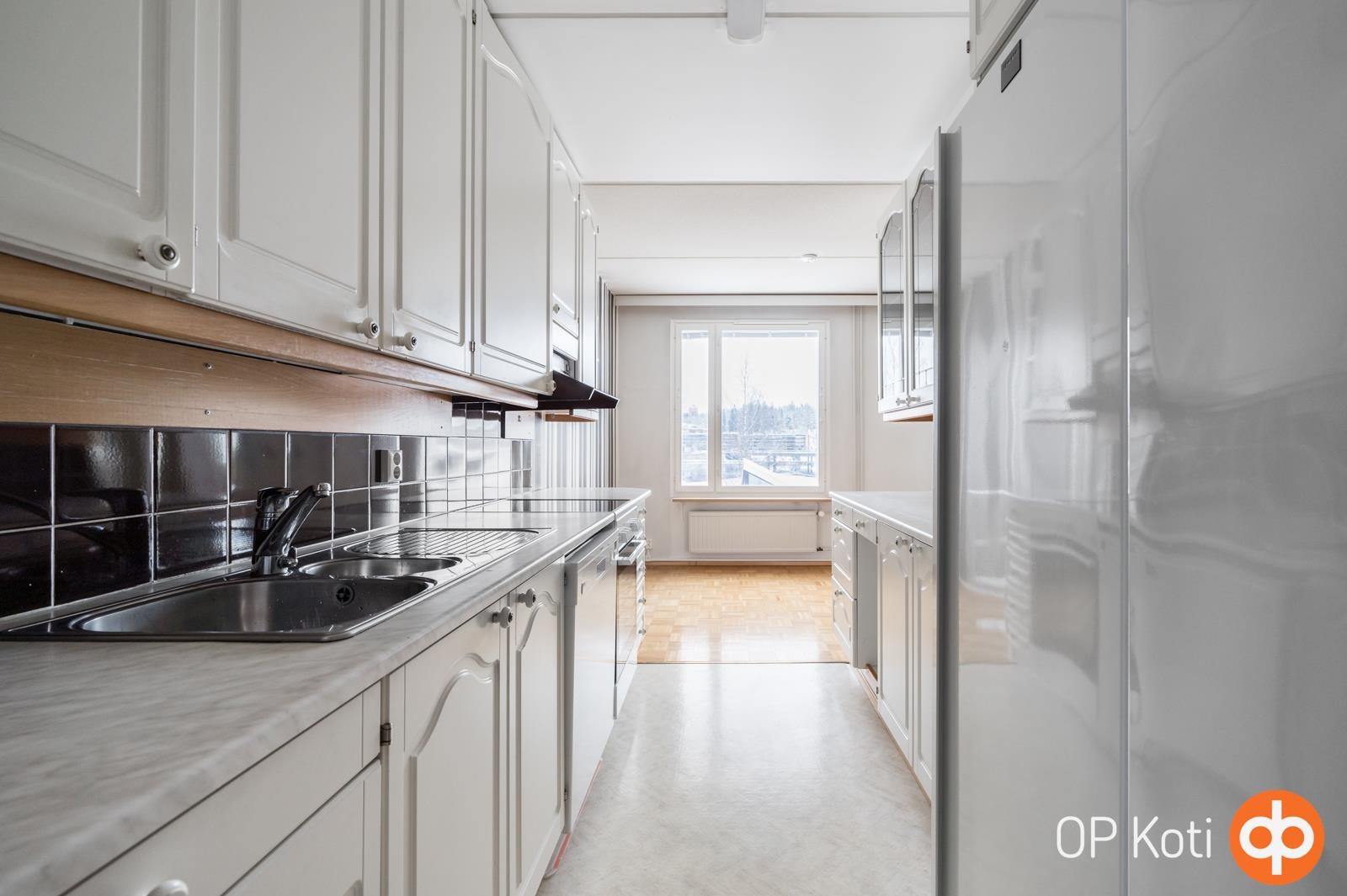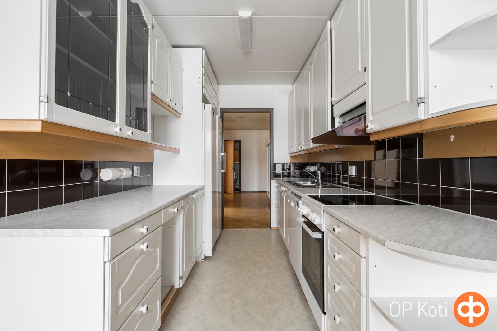 - Jääkaappi, pakastekaappi, keraaminen liesi, liesikupu, astianpesukone, kaapistot, kiinteät valaisimet.