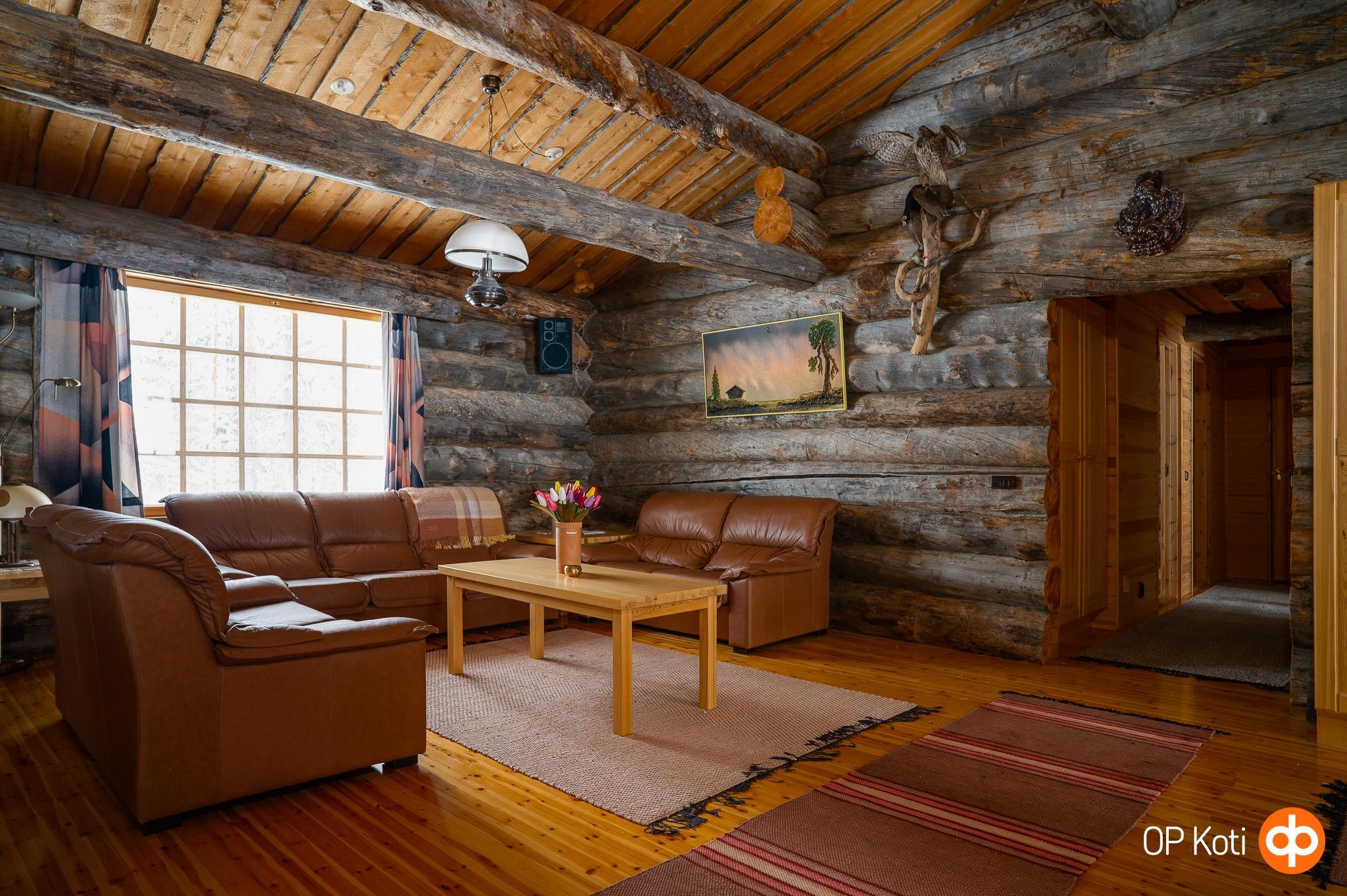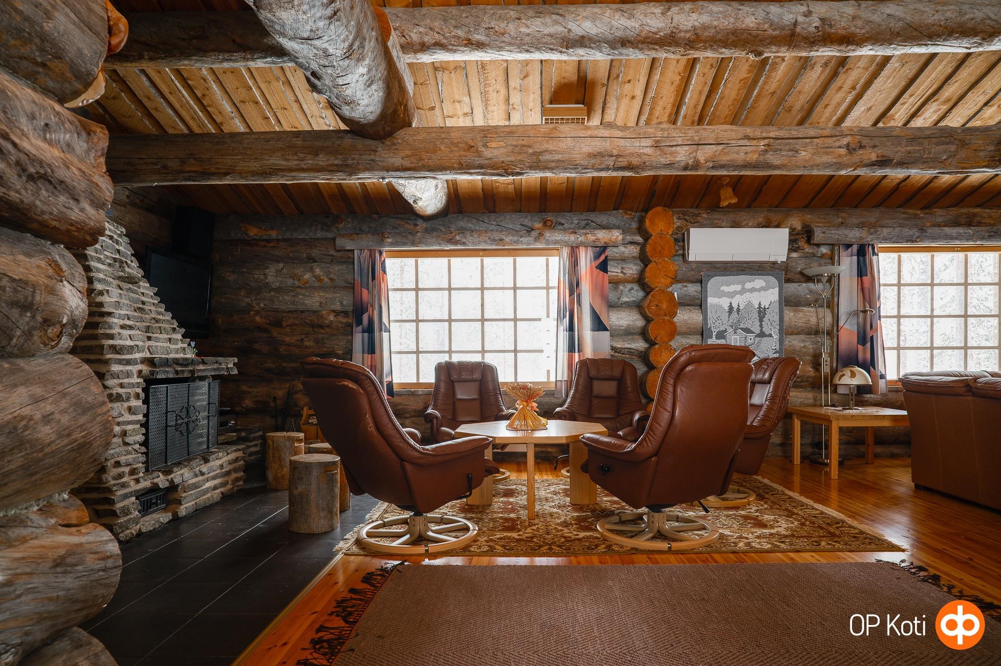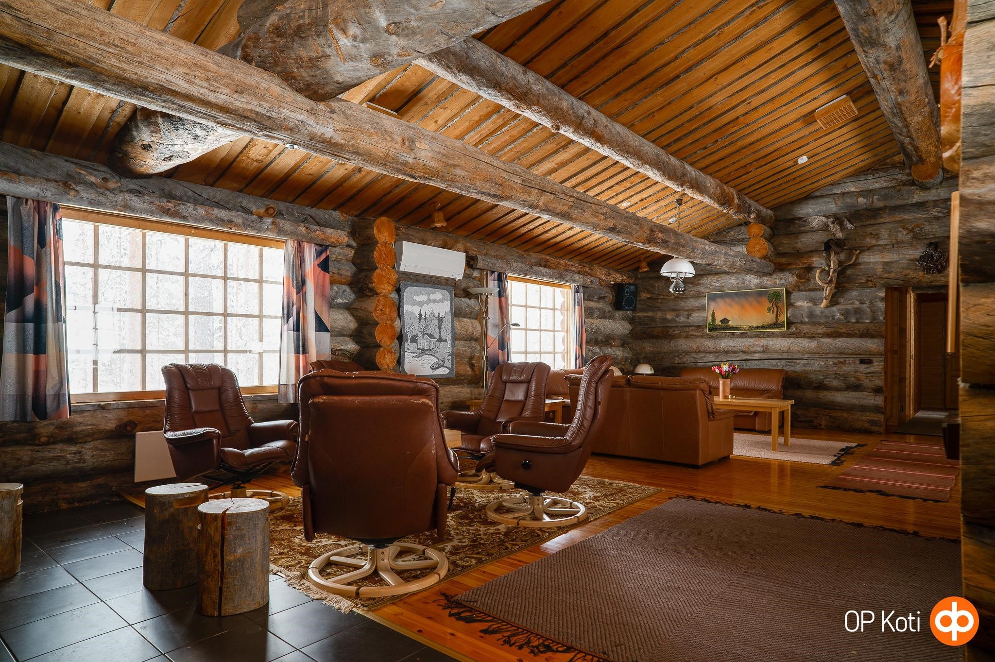 Avarassa keittiön ja olohuoneen yhdistelmässä on tilaa suuremmallekin seurueelle, isot ikkunat tuovat luonnonvalon osaksi arkea ja upea takka luo tunnelmaa. Tunnelma syntyy kelorakenteista ja kauniista näkymistä luontoon, mikä luo viihtyisyyttä vuodenajasta riippumatta. Neljä erillistä makuuhuonetta sekä parvi mahdollistavat isommankin seurueen lomailun. Terassi tarjoaa mahdollisuuden nauttia ulkoilmasta ja rauhallisesta ympäristöstä.