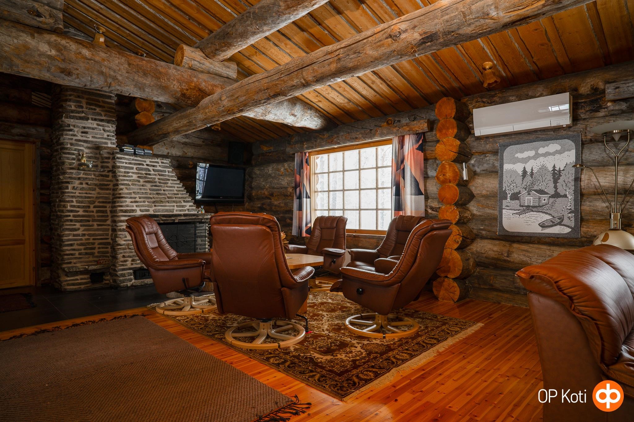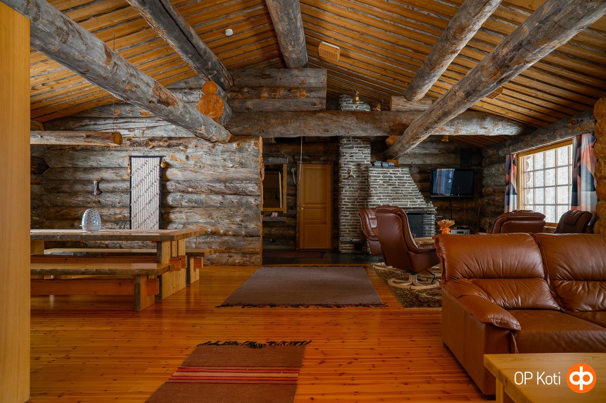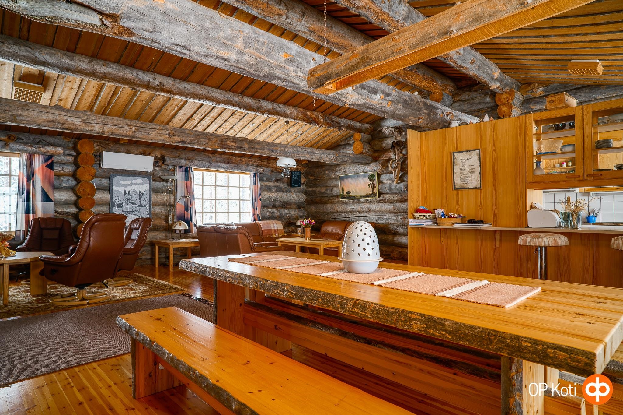 Avarassa keittiön ja olohuoneen yhdistelmässä on tilaa suuremmallekin seurueelle, isot ikkunat tuovat luonnonvalon osaksi arkea ja upea takka luo tunnelmaa. Tunnelma syntyy kelorakenteista ja kauniista näkymistä luontoon, mikä luo viihtyisyyttä vuodenajasta riippumatta. Neljä erillistä makuuhuonetta sekä parvi mahdollistavat isommankin seurueen lomailun. Terassi tarjoaa mahdollisuuden nauttia ulkoilmasta ja rauhallisesta ympäristöstä.