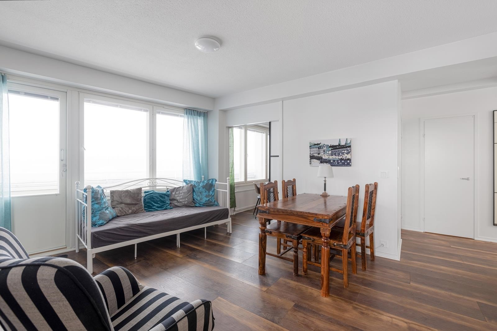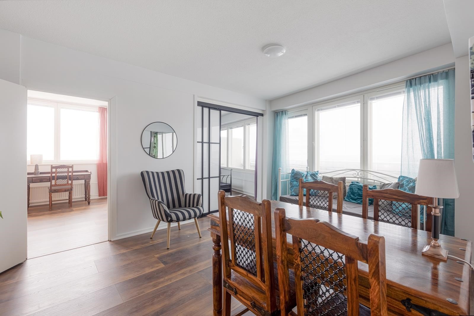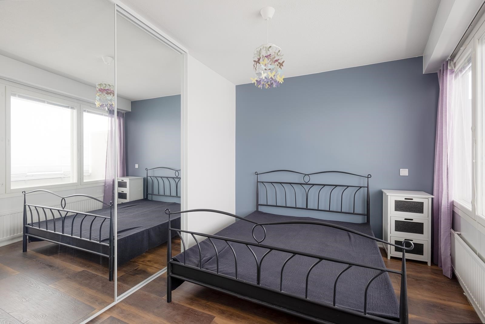 Keittiö: laminaatti. Olohuone: laminaatti. Makuuhuone 1: laminaatti. Makuuhuone 2: laminaatti.